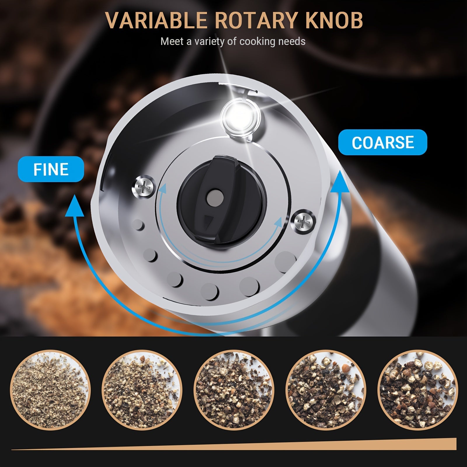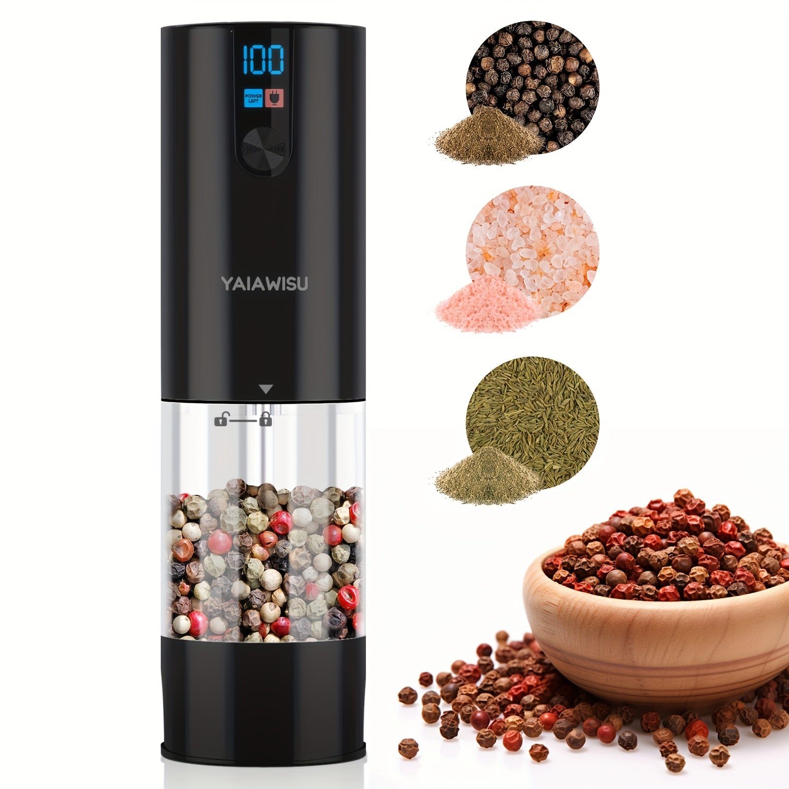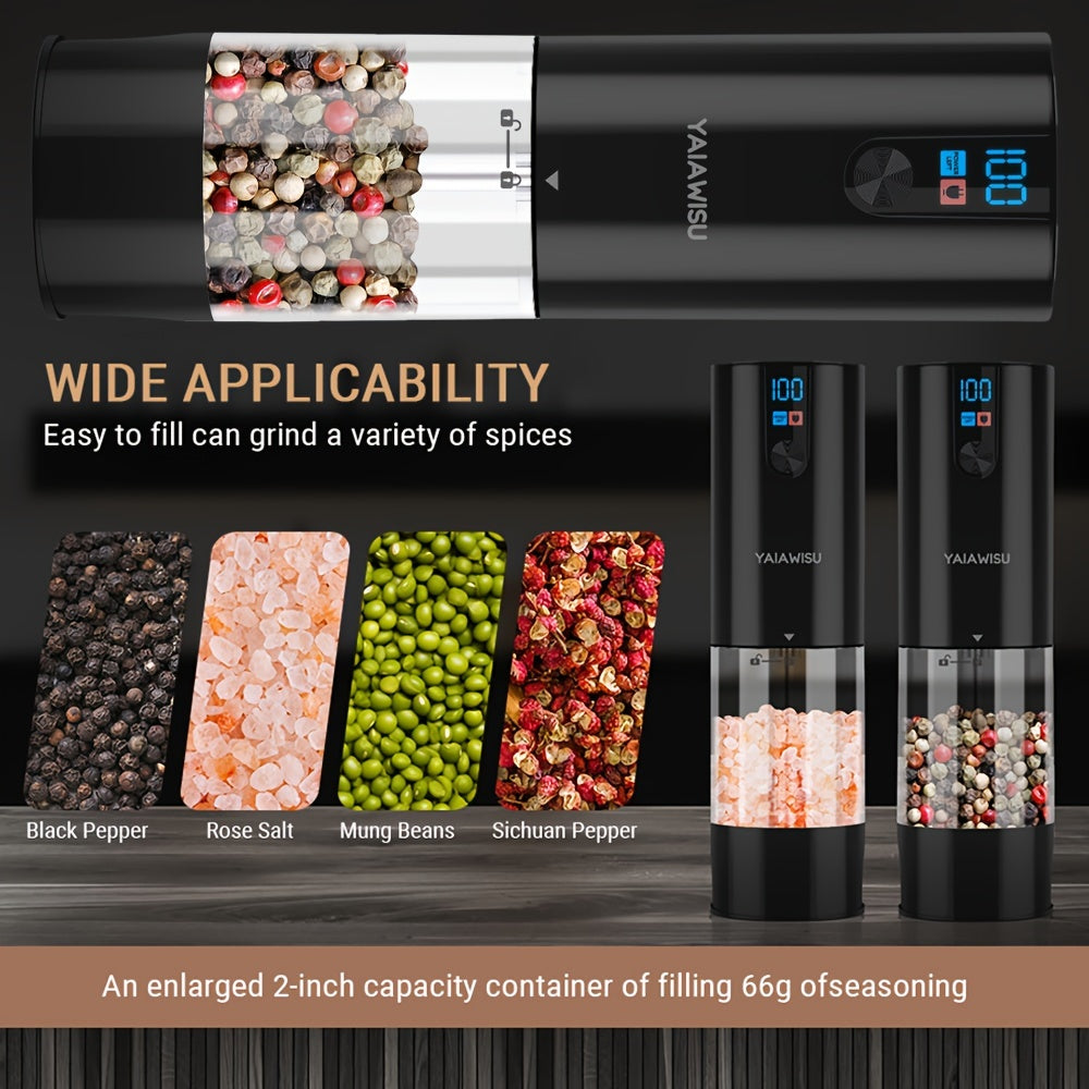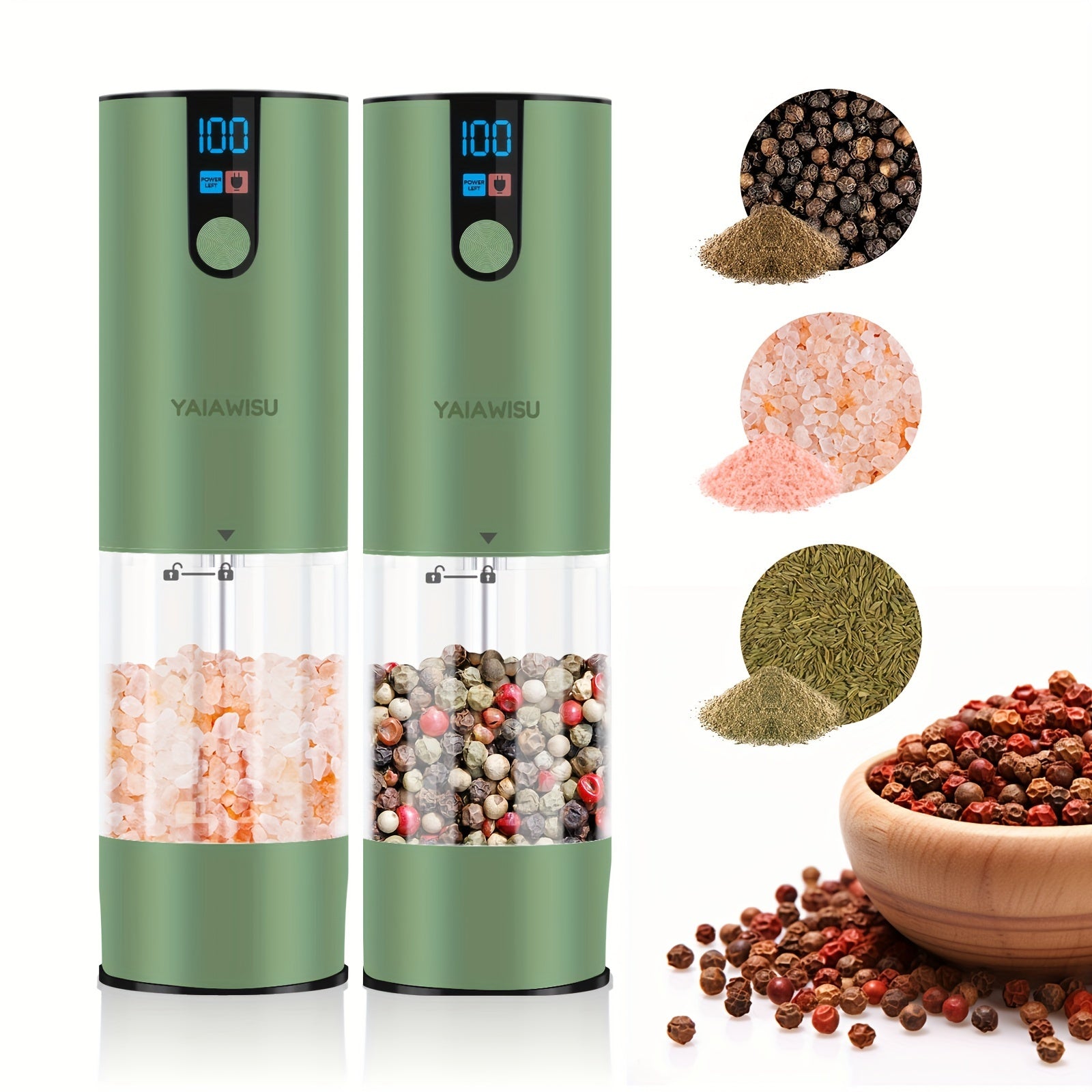 Juego de 2 piezas de molinillos de especias eléctricos con pantalla LCD, recargables por USB, de molienda gruesa/fina, para cocina, restaurante y barbacoa