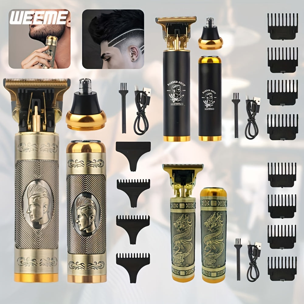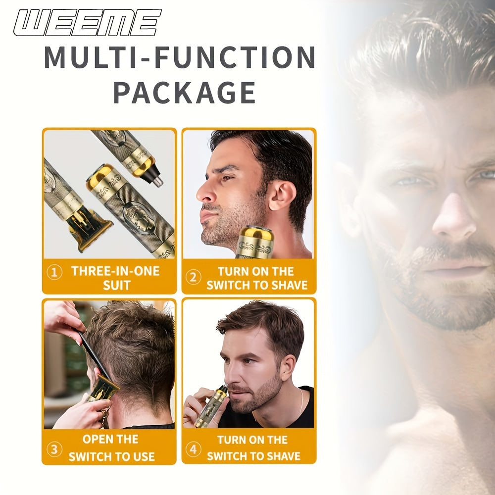 Set de cuidado capilar 3 en 1, cortapelos eléctrico, recortador de orejas y nariz, recargable por USB, afeitadora de barba
