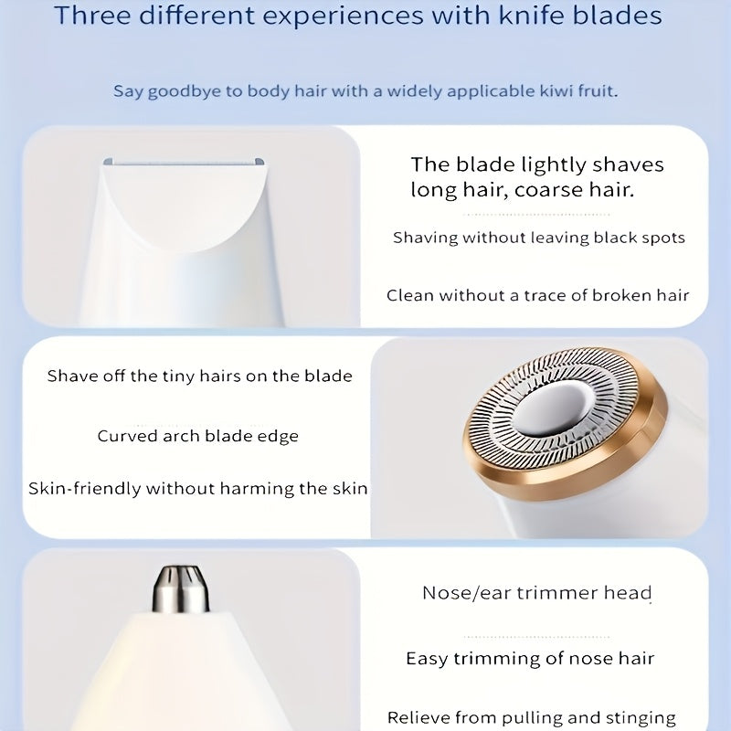 Kit de afeitadora eléctrica para mujer con múltiples accesorios, recargable con batería USB