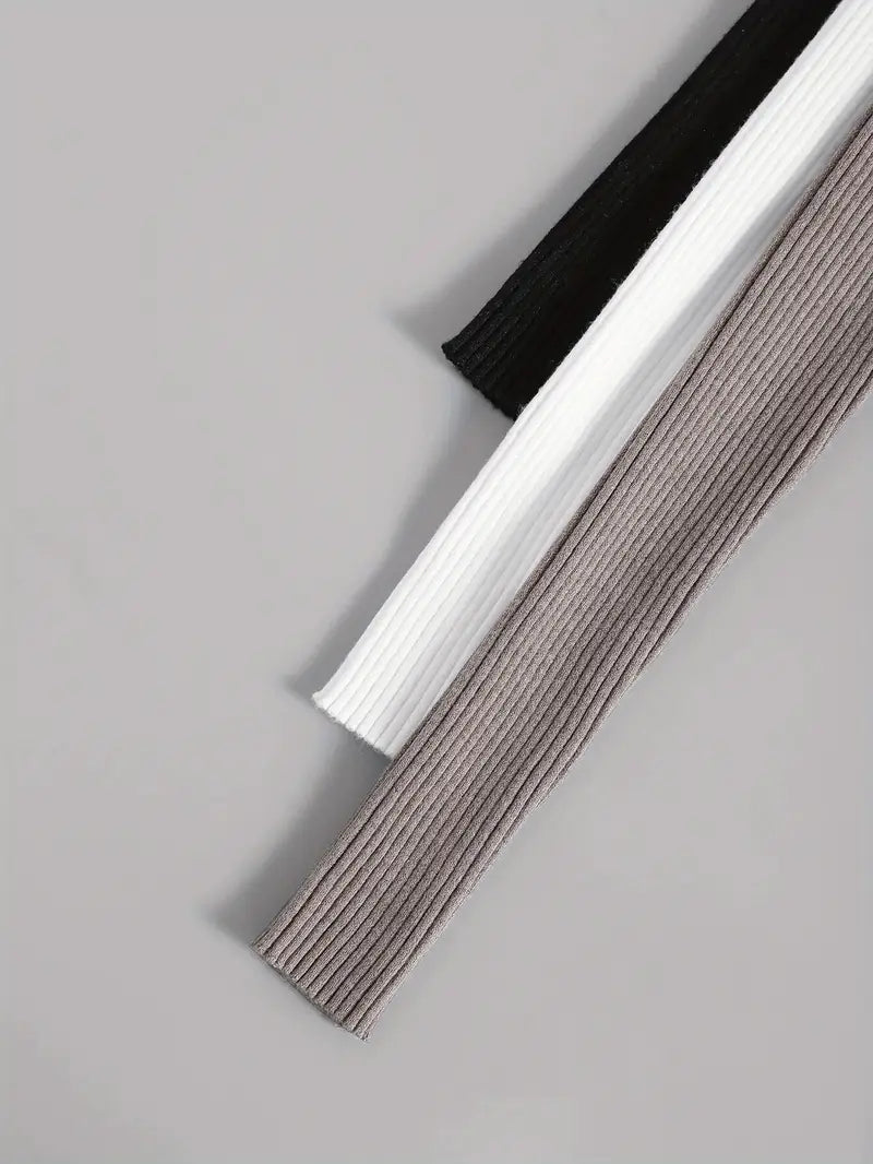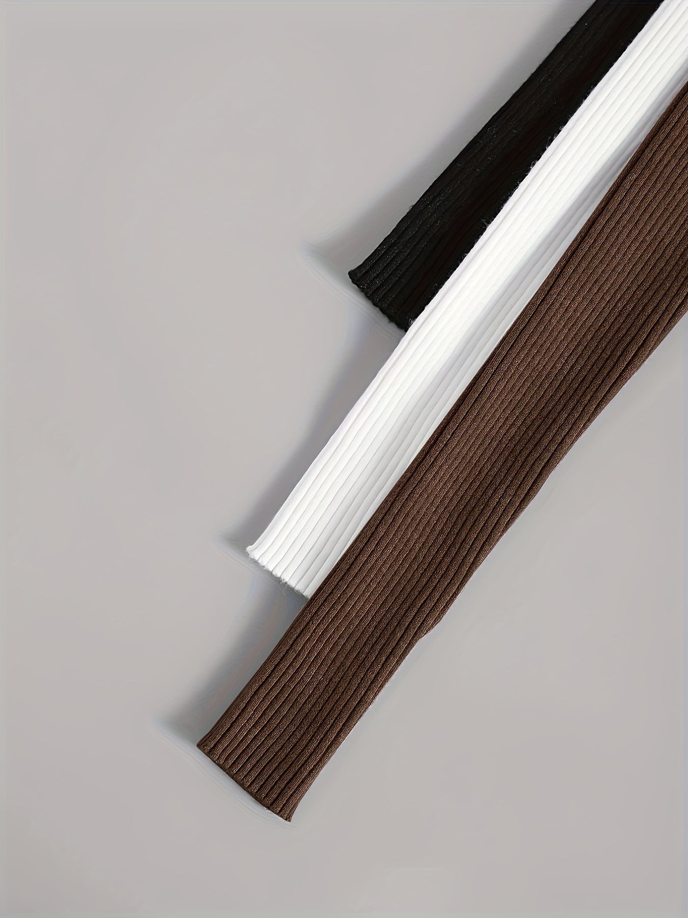 Camisetas de punto de canalé de color sólido para mujer, pack de 3, cuello alto, otoño e invierno, ajuste ajustado, suéteres casuales
