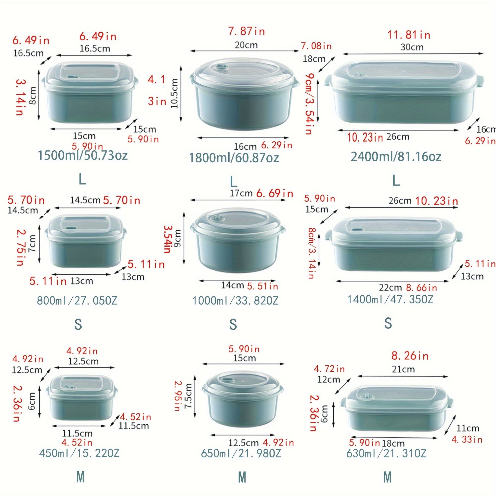 Contenedores de almacenamiento de alimentos de plástico aptos para microondas de 3 piezas con tapas de clip para frutas, verduras y carne