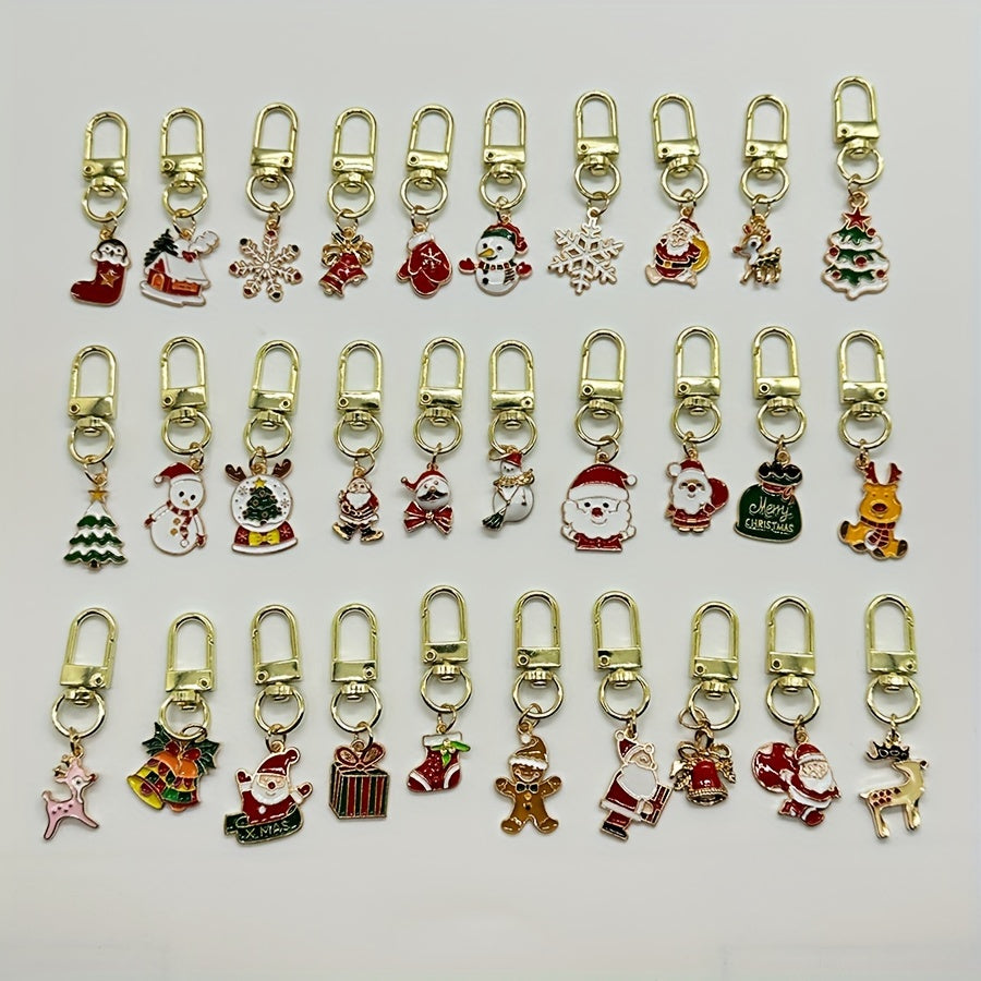 Paquete de 30 llaveros de aleación con temática navideña para bolsos y llaves