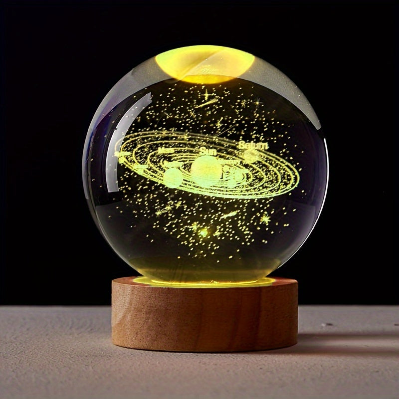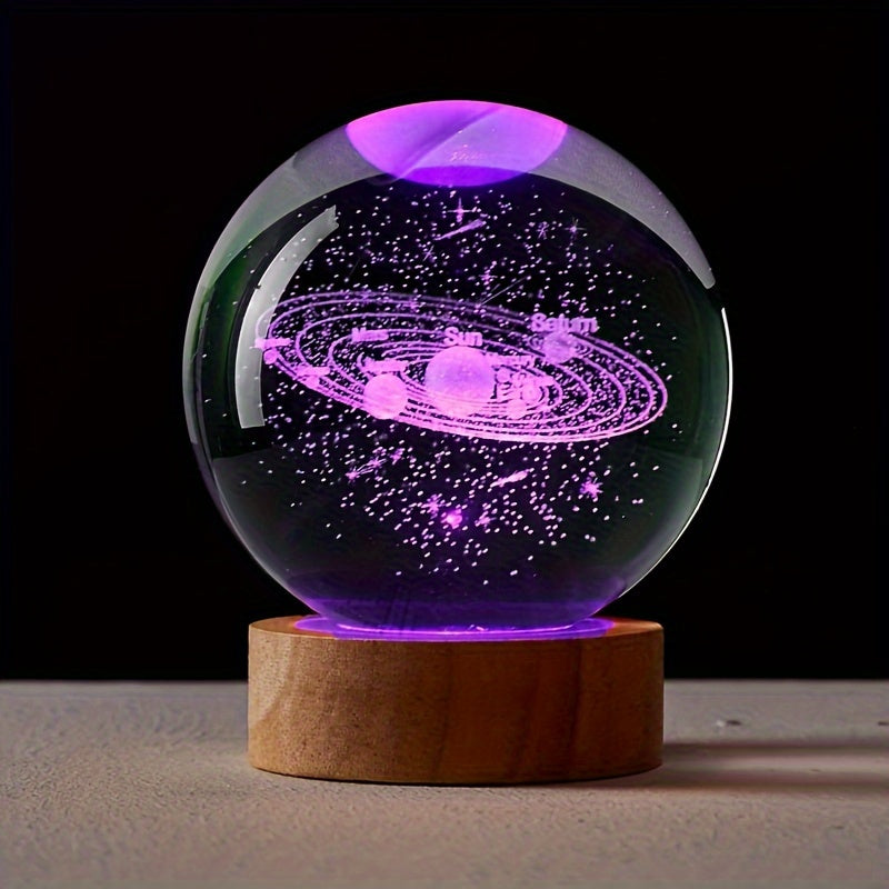 Luz nocturna del sistema solar en 3D con bola de cristal de vidrio, regalo de astronomía para niños y adultos
