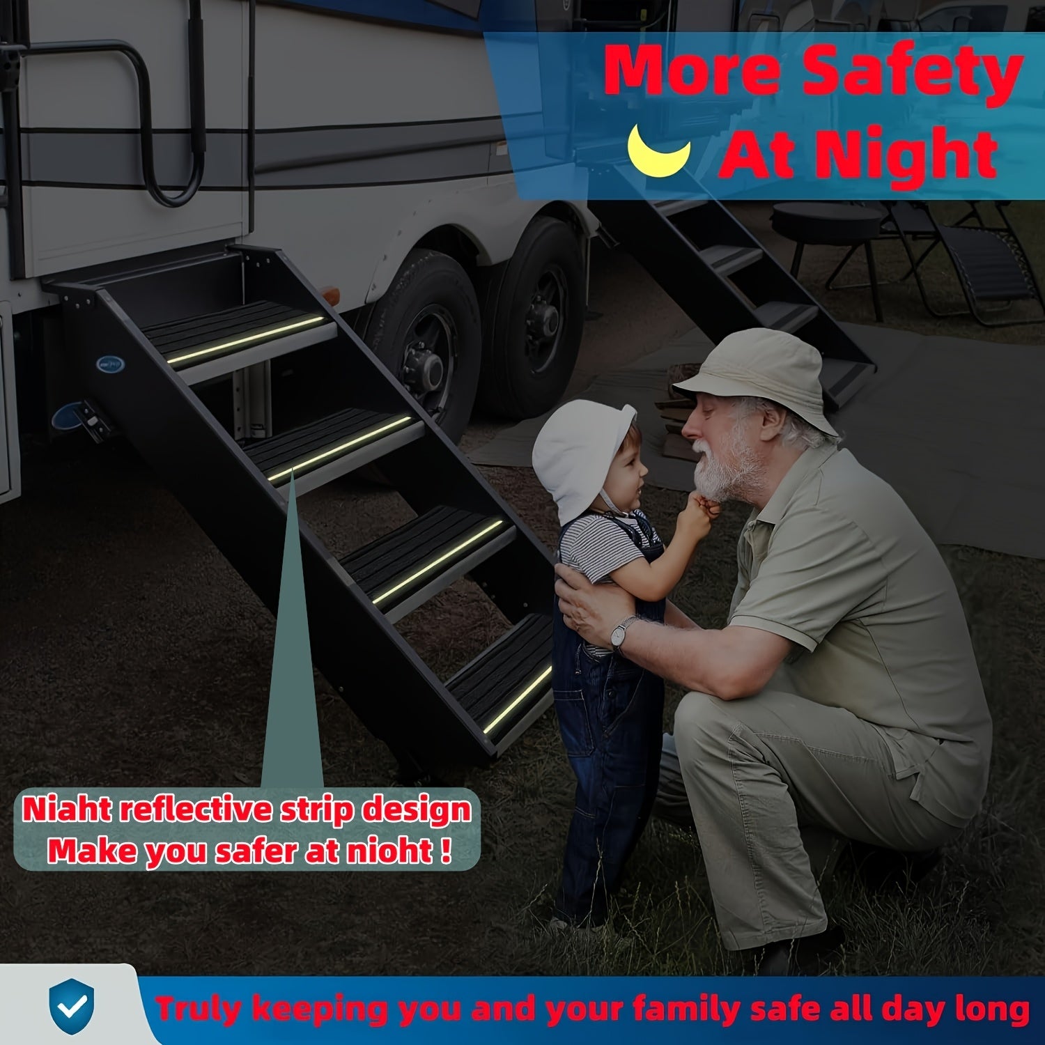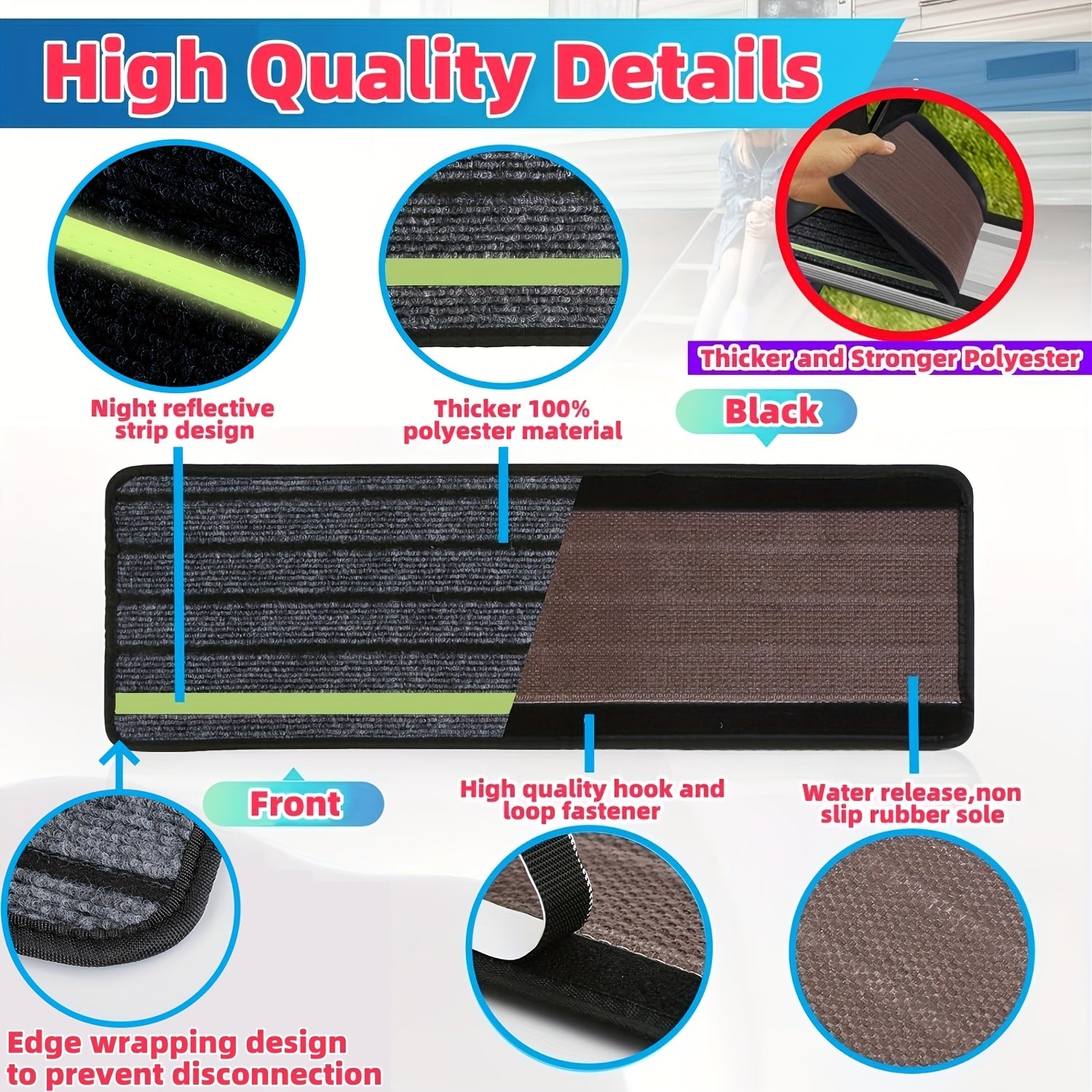 Juego de 3 piezas de cubiertas para escalón de RV, negro, poliéster, con tiras reflectantes duraderas, accesorios para acampar