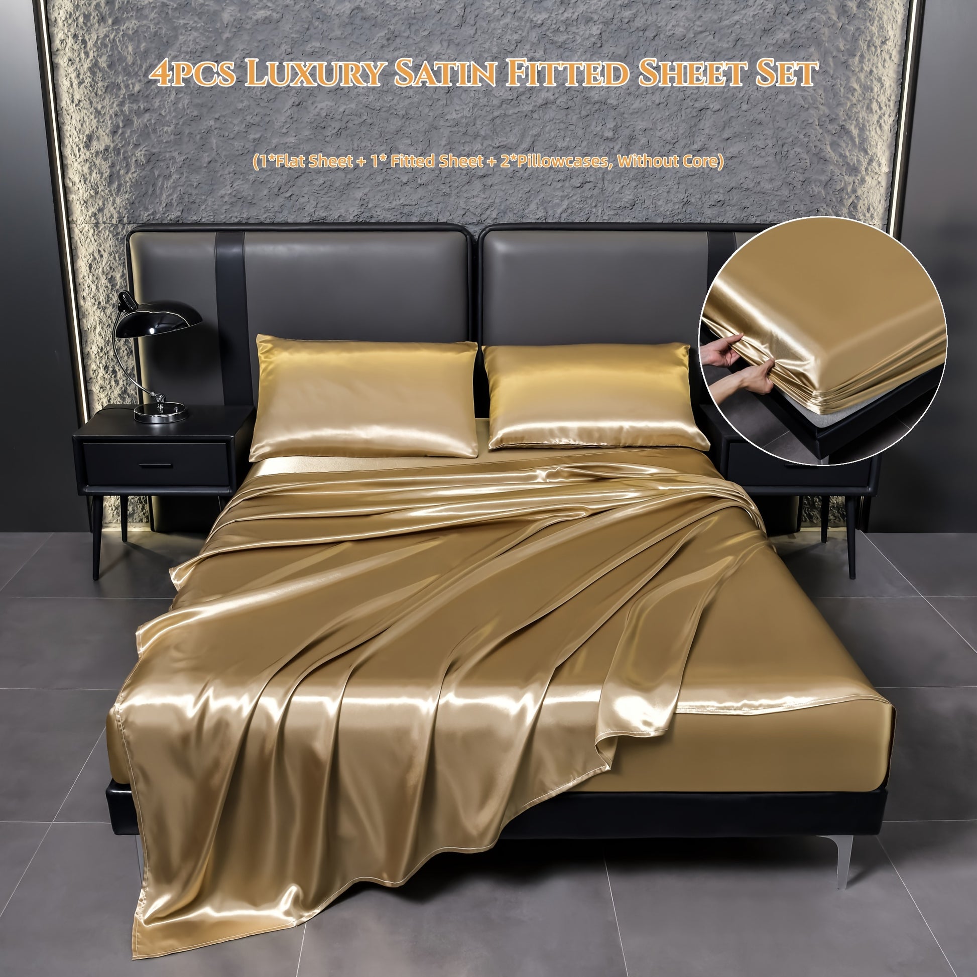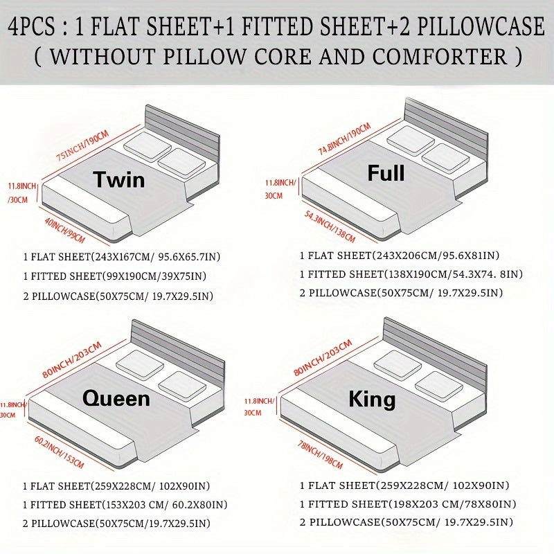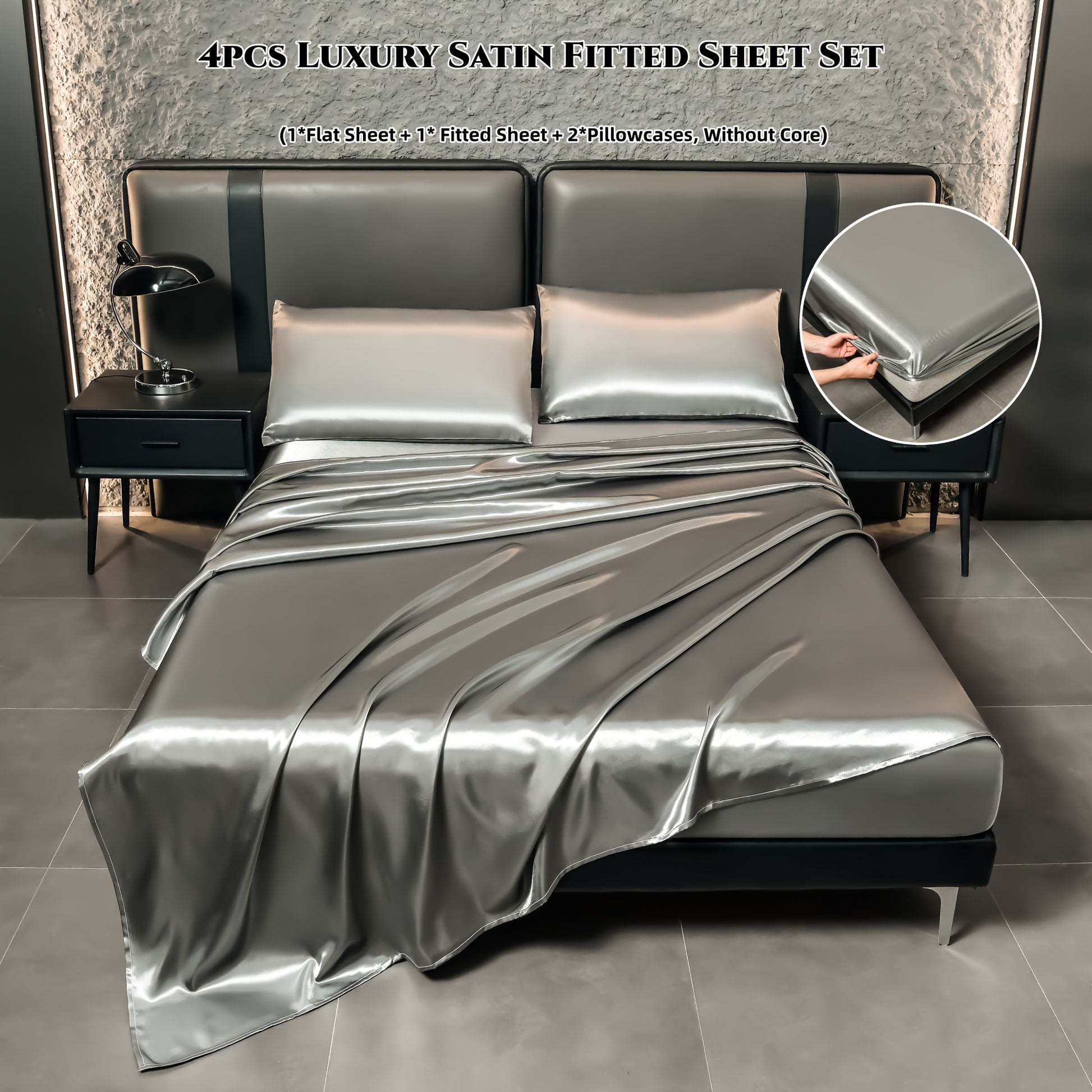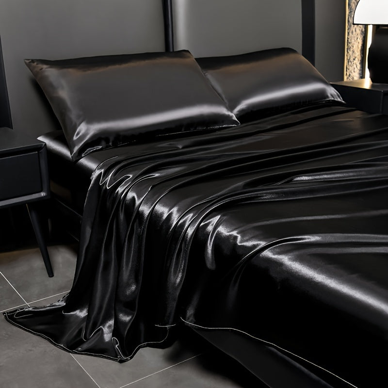 Juego de sábanas de satén de 4 piezas, reversible, transpirable, antideslizante, de color sólido para dormitorio, invitados, hotel