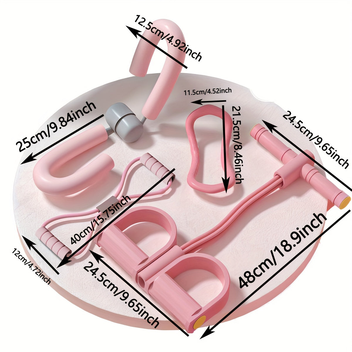 Juego de equipo de yoga y fitness de 4 piezas en rosa, hecho de material PP duradero para entrenamientos en casa