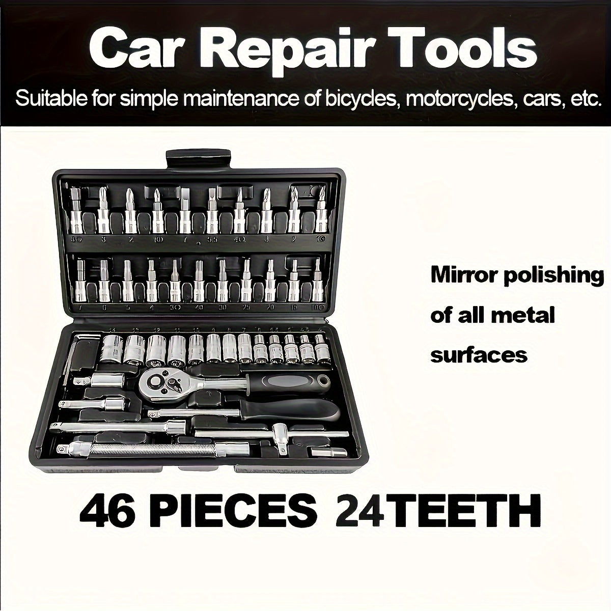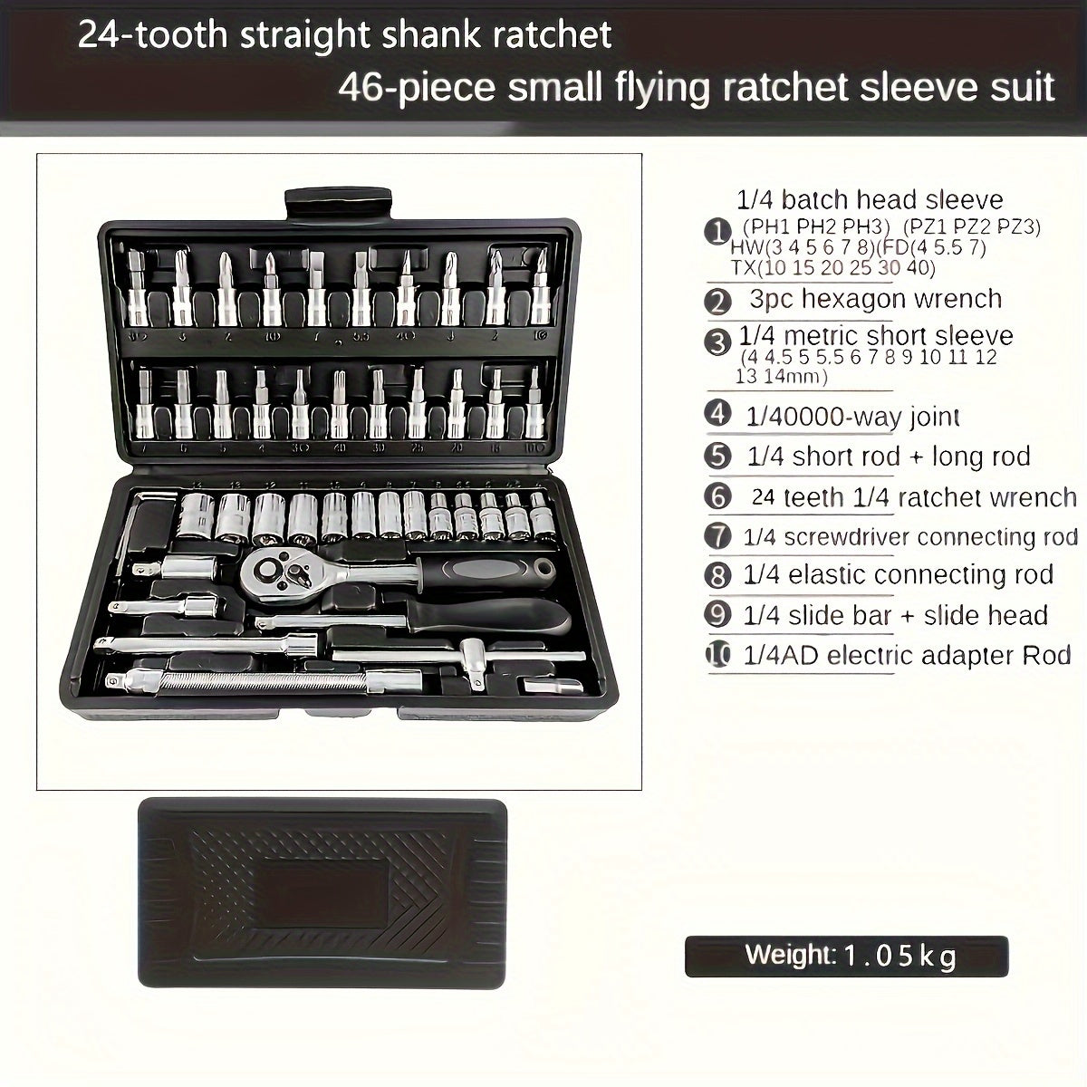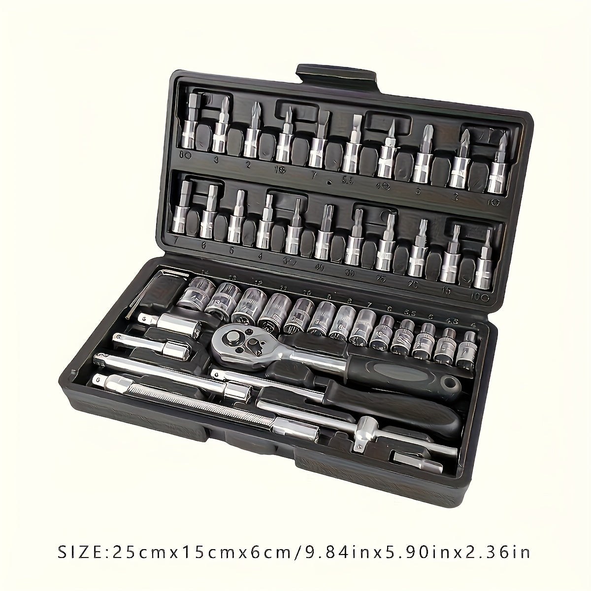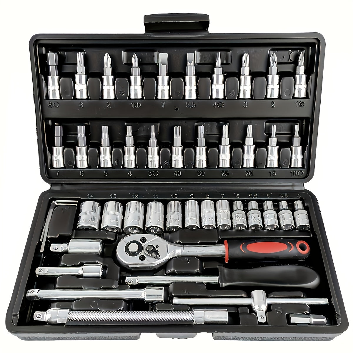 Juego de llaves de vaso de acero cromo vanadio de 46 piezas con trinquete de 1/4 de pulgada y estuche de almacenamiento