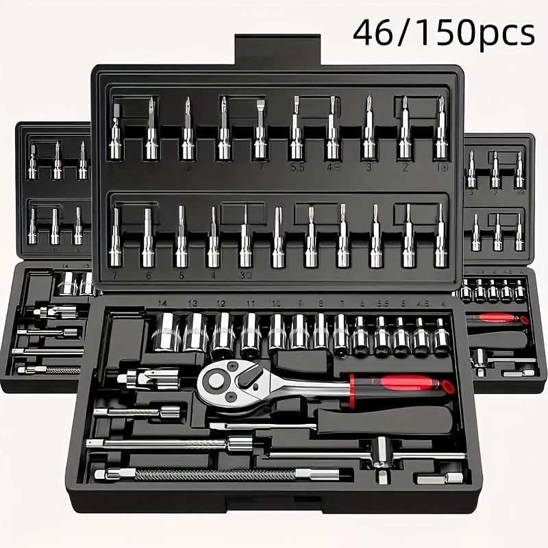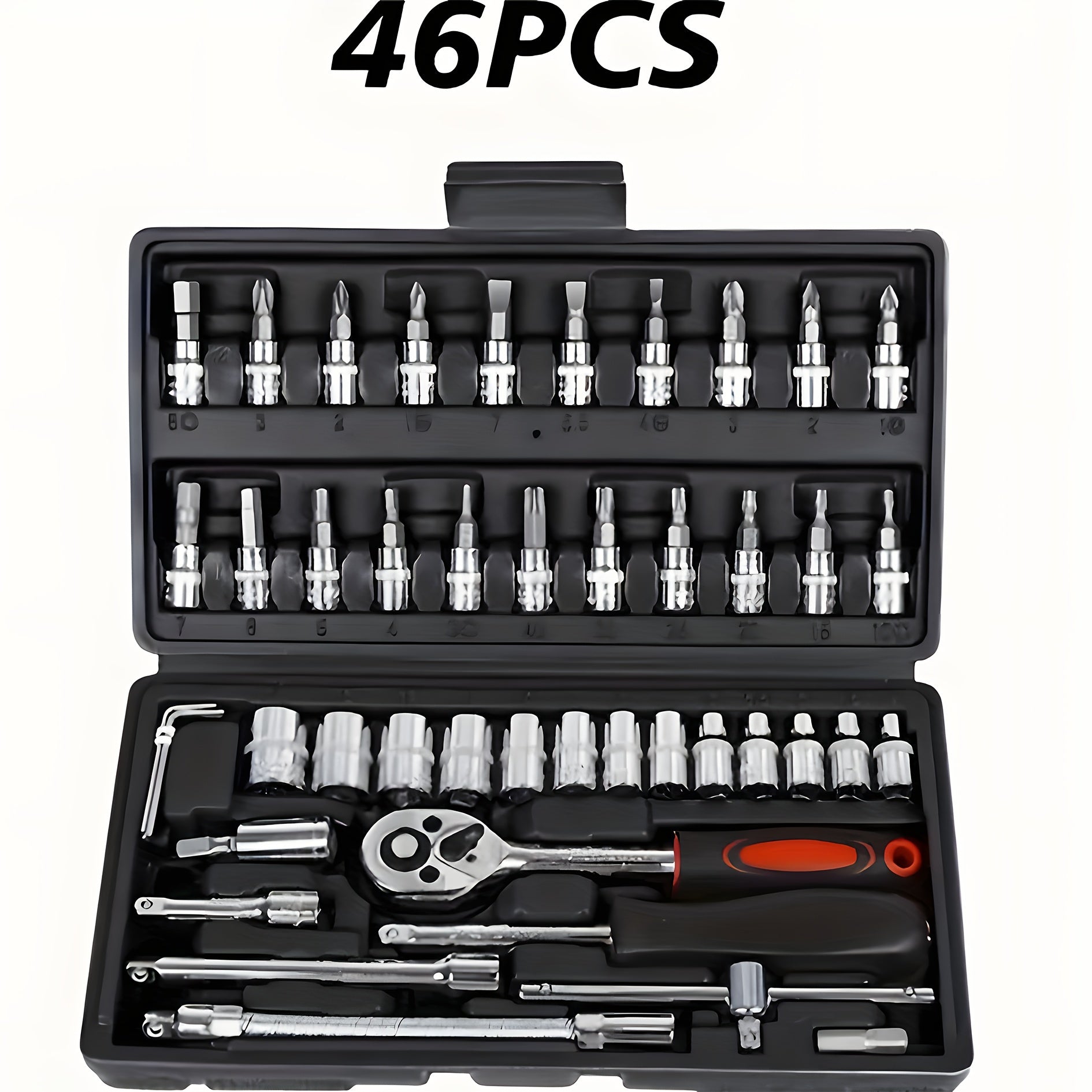 Juego de llave de carraca de 46 piezas con caja de 1/4 de pulgada con varilla métrica y extendida para uso en coche y en el hogar