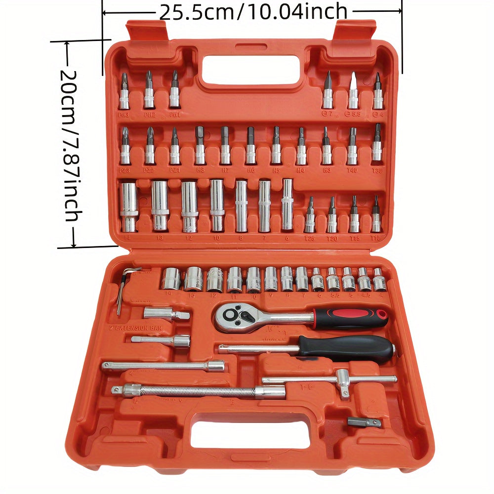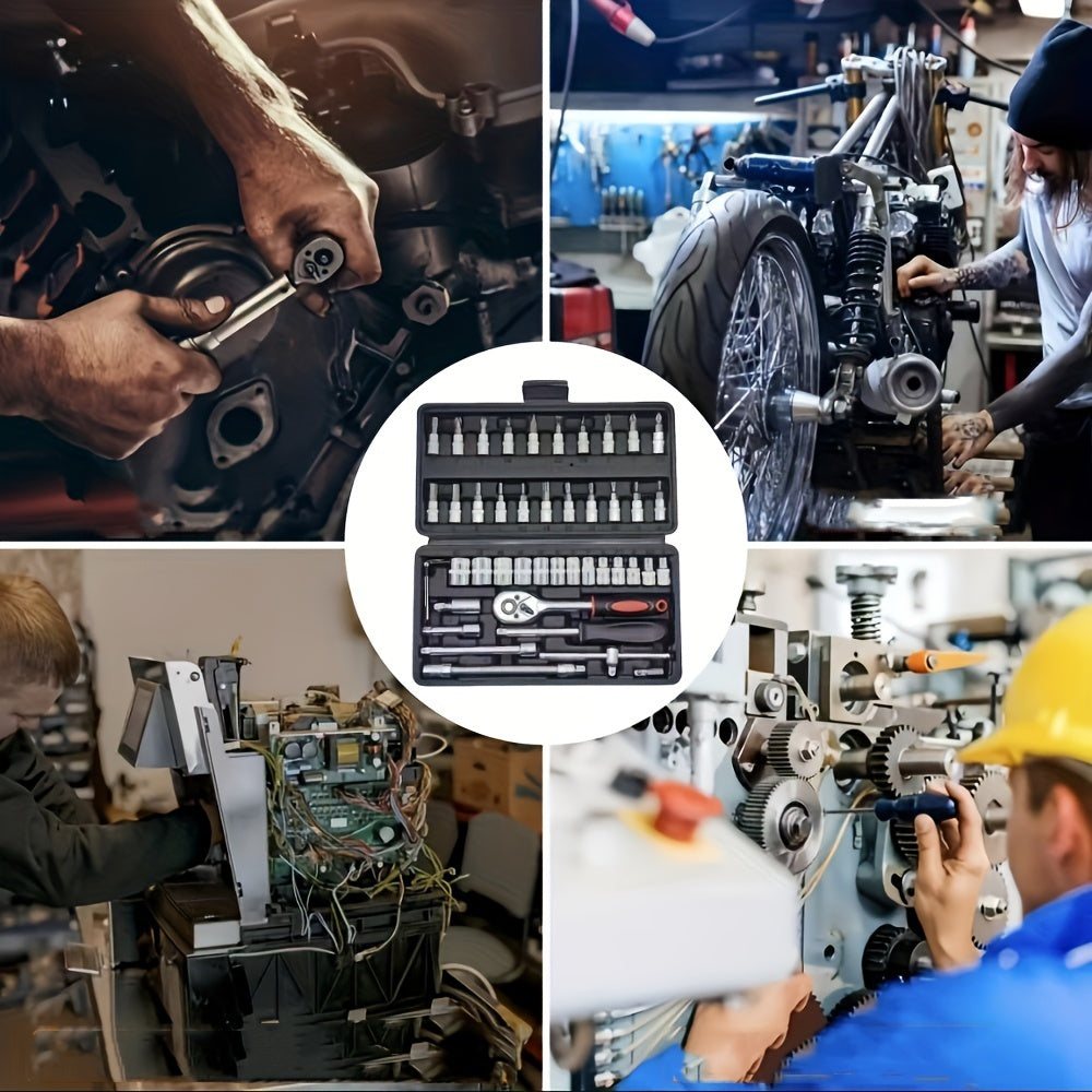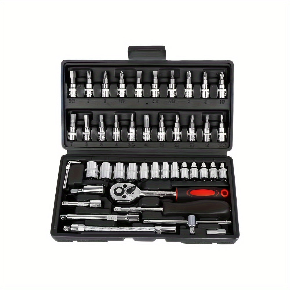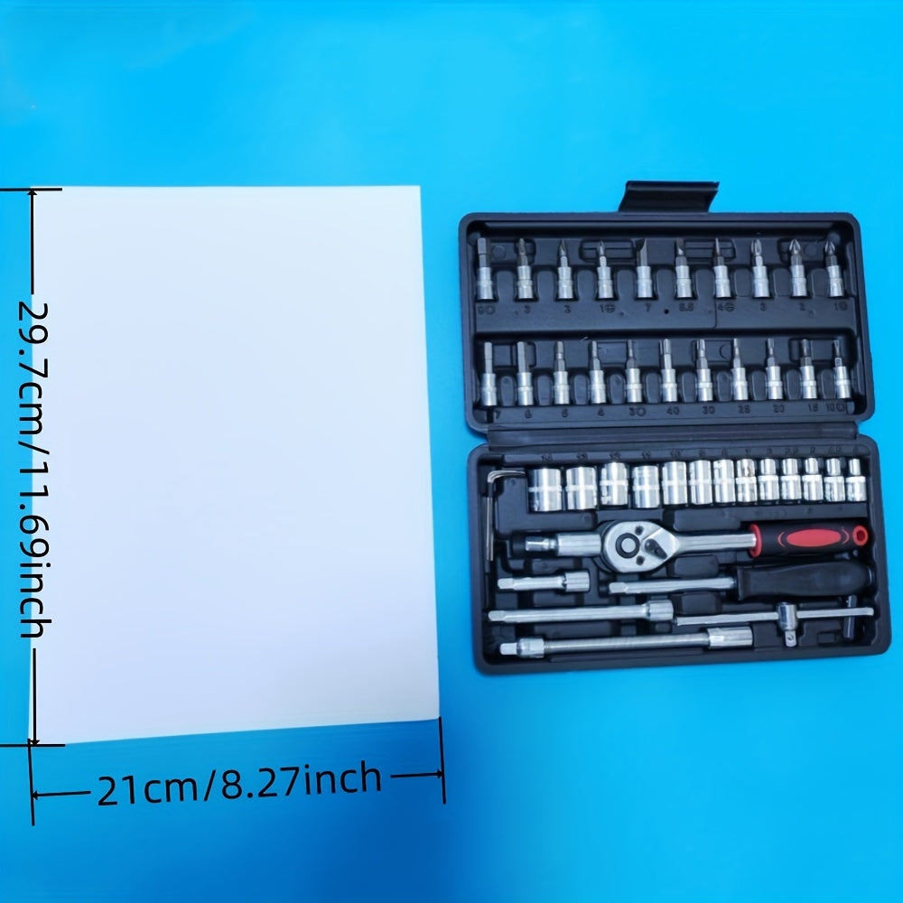 Juego de llaves de vaso de acero cromo vanadio de 46 piezas con carraca, juntas universales, extensiones y adaptador para taladro para reparación automotriz y del hogar