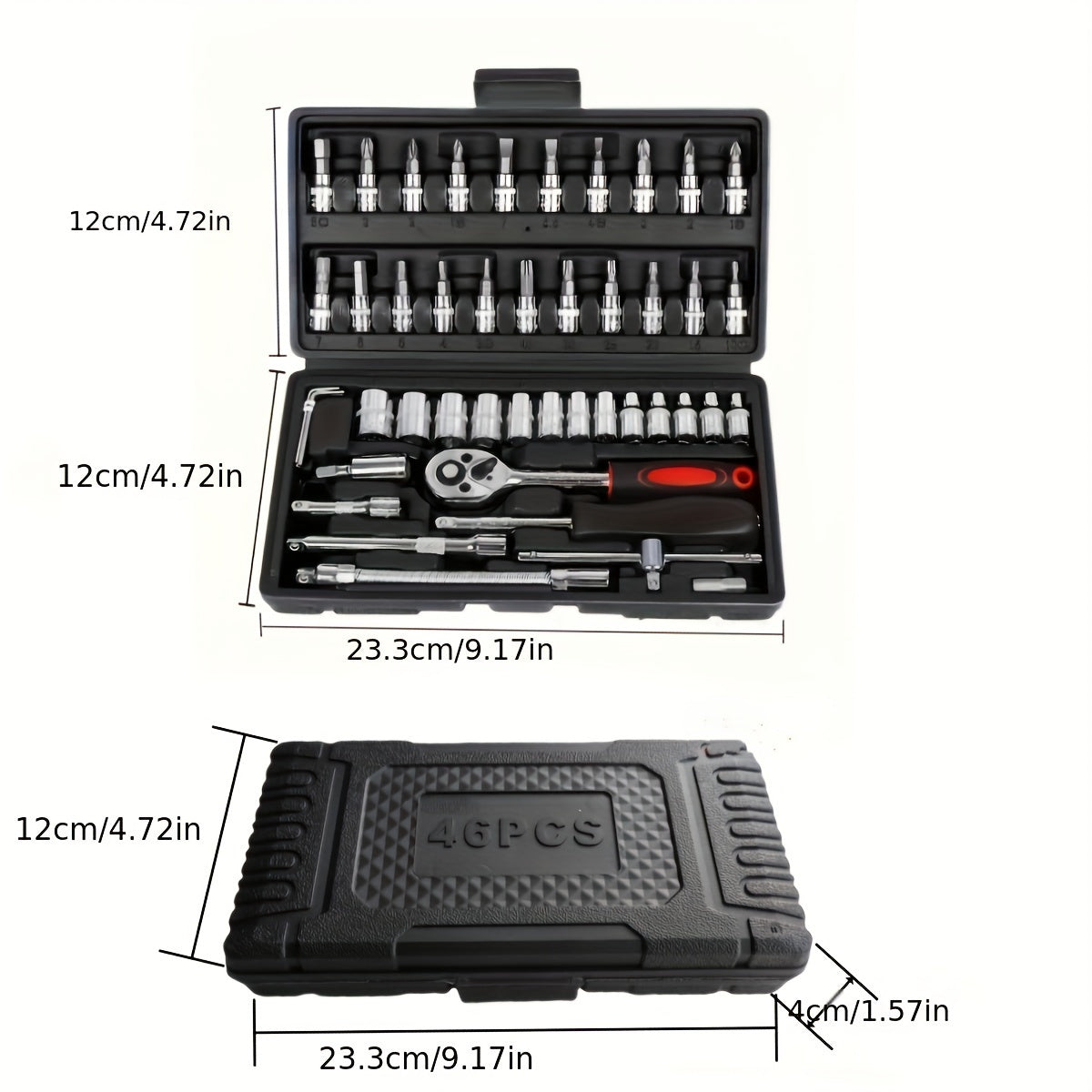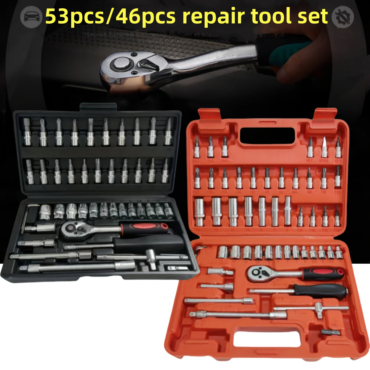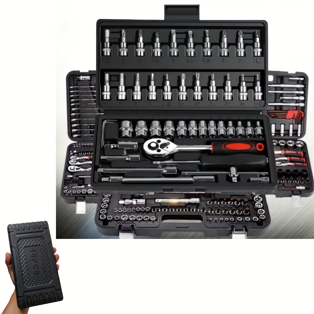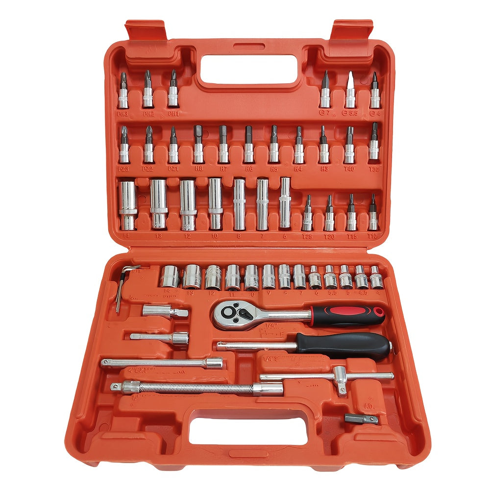 Juego de llaves de vaso de acero cromo vanadio de 46 piezas con carraca, juntas universales, extensiones y adaptador para taladro para reparación automotriz y del hogar