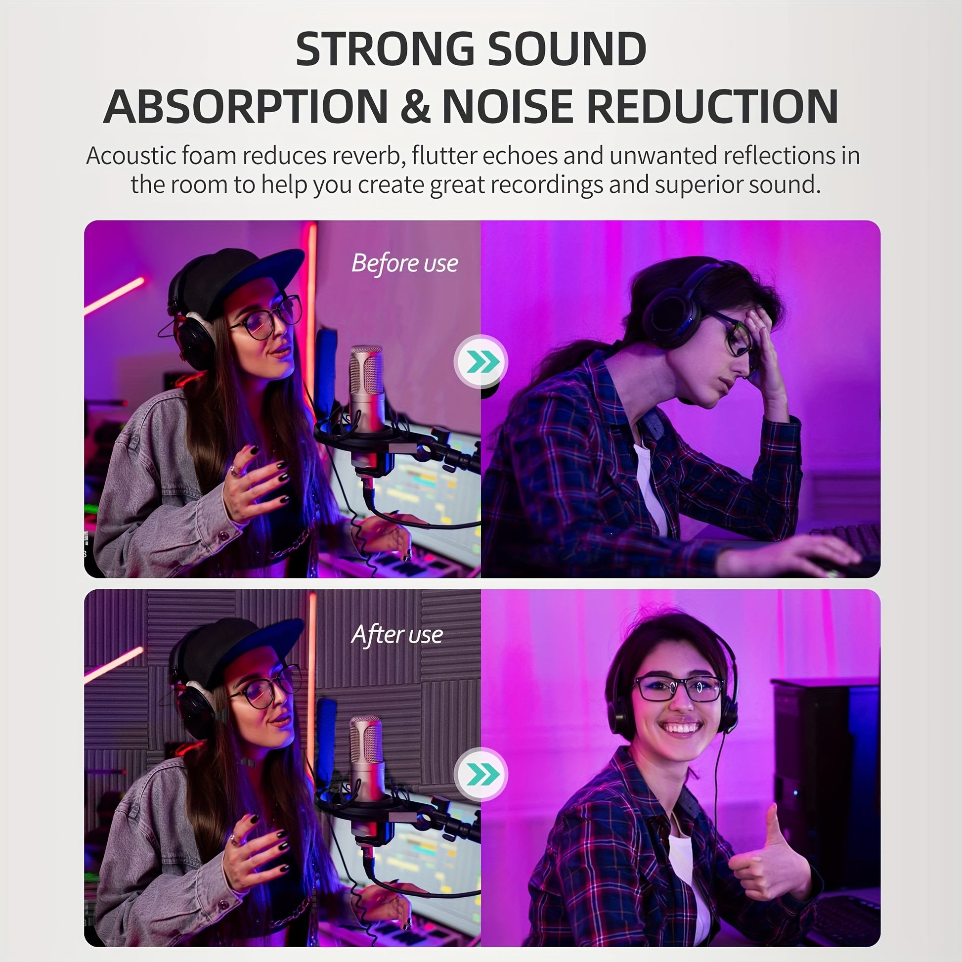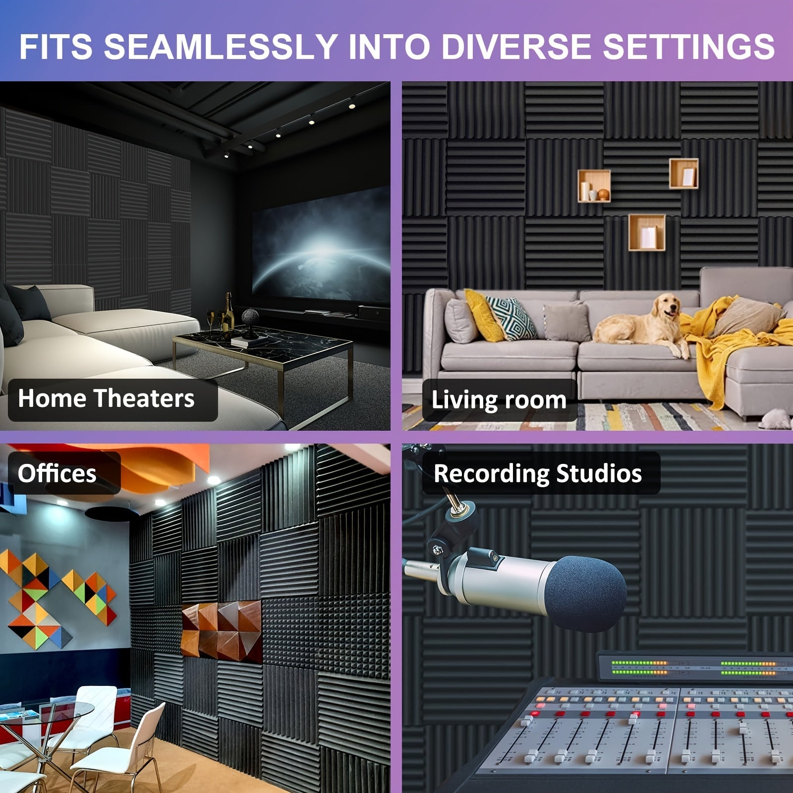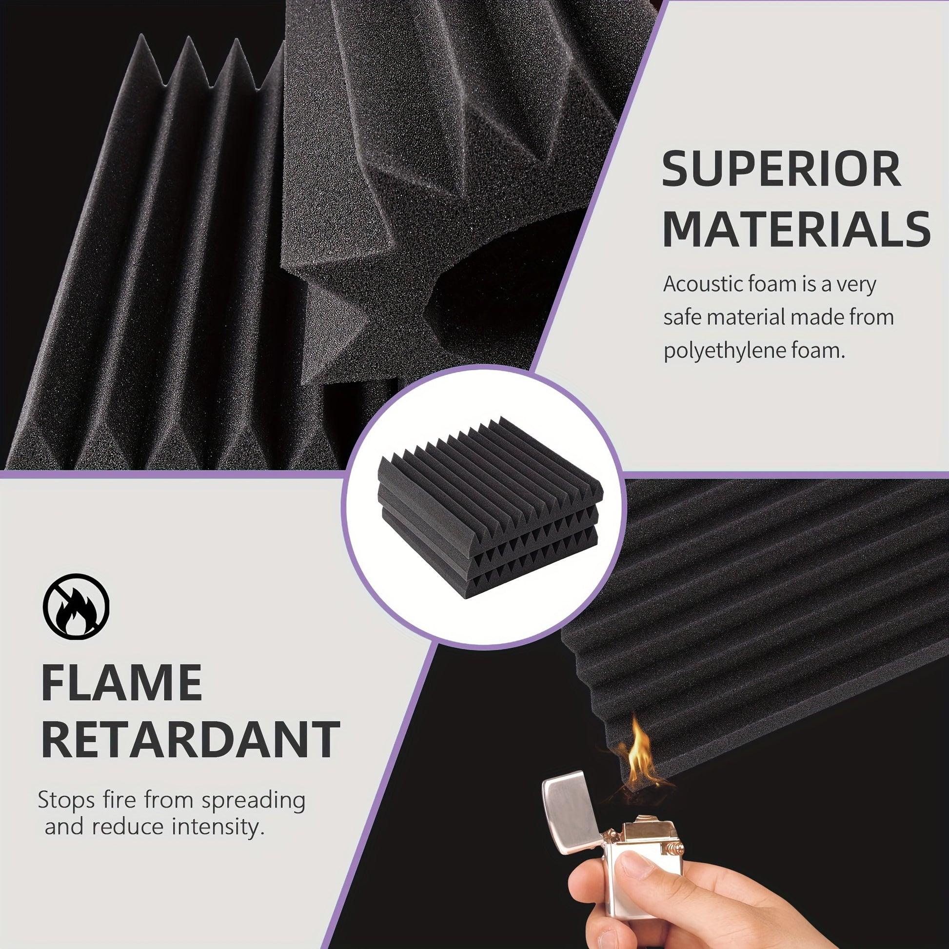 48 paneles de cuña acústica insonorizada en negro, baldosas de espuma acústica ignífugas de 30x30cm para estudios, cine en casa, oficina