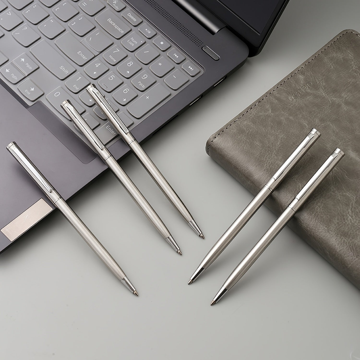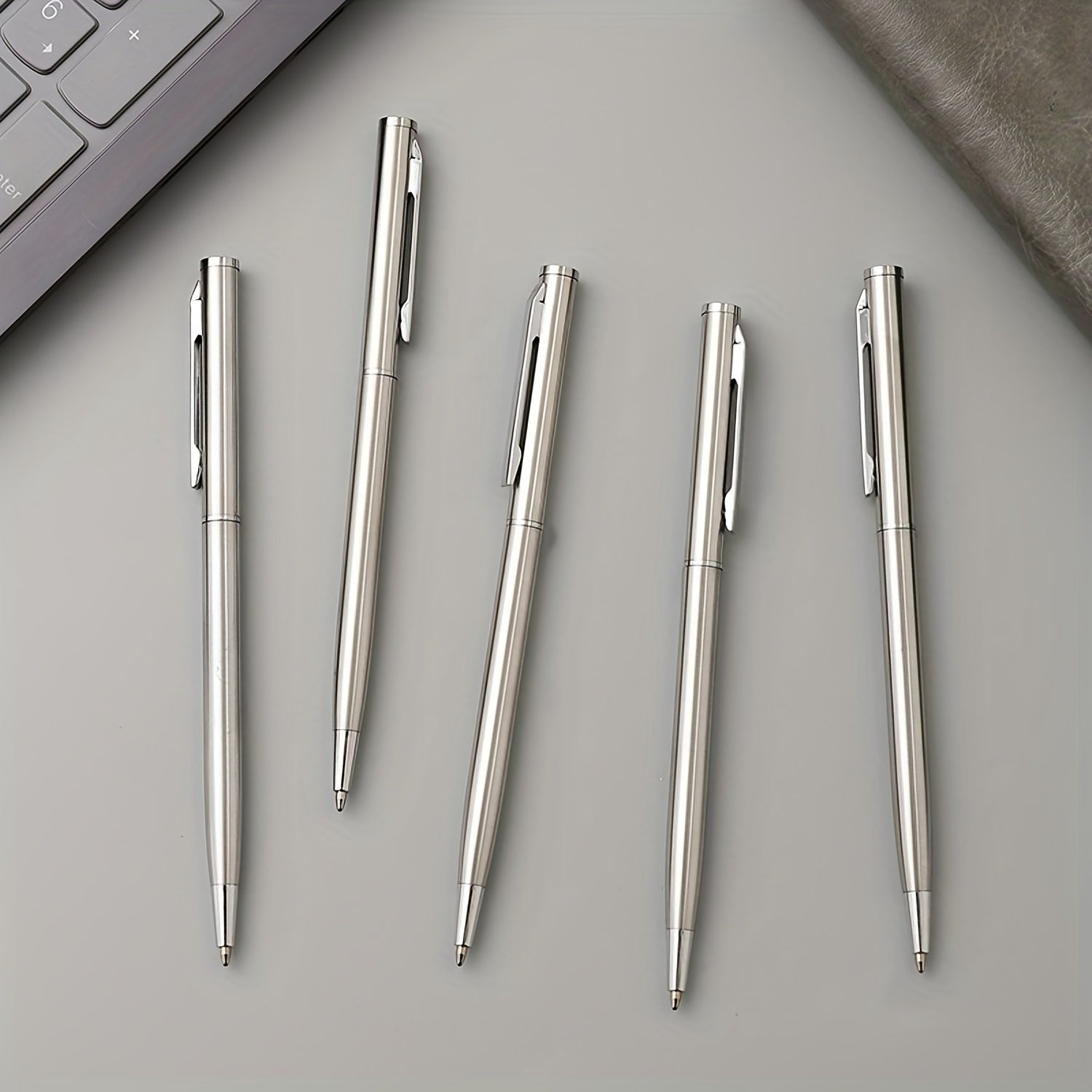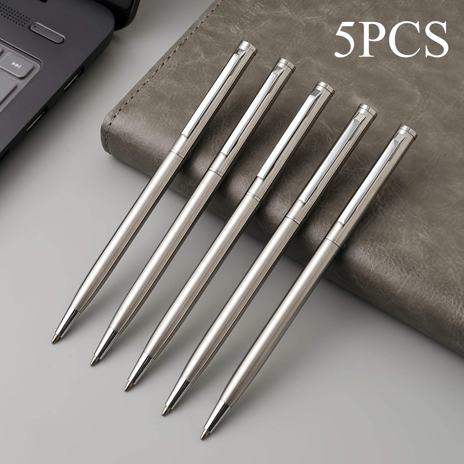 Juego de 5 bolígrafos de acero inoxidable plateado para adultos, regalo de oficina