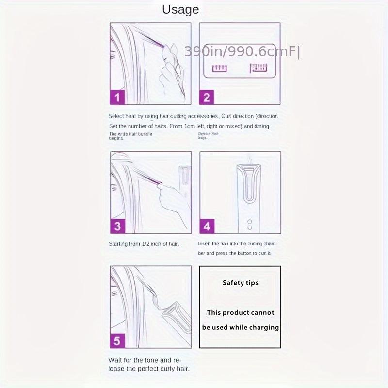 Rizador automático con 5 ajustes de calor, recubrimiento de cerámica, tecnología antiquemaduras, sin enredos, batería de litio recargable por USB