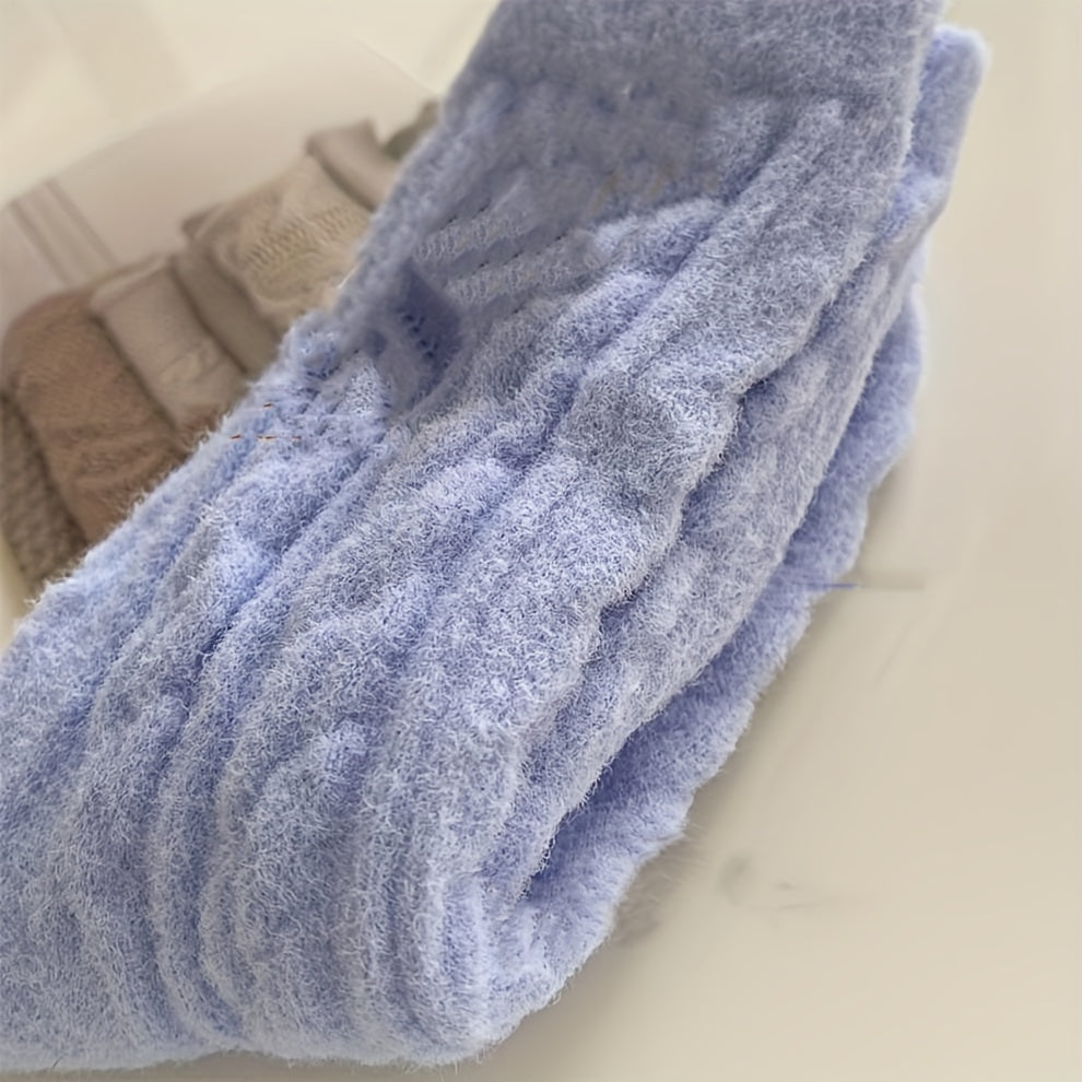 Calcetines de felpa hasta la rodilla para mujer, 5 pares, de punto cálido, color sólido