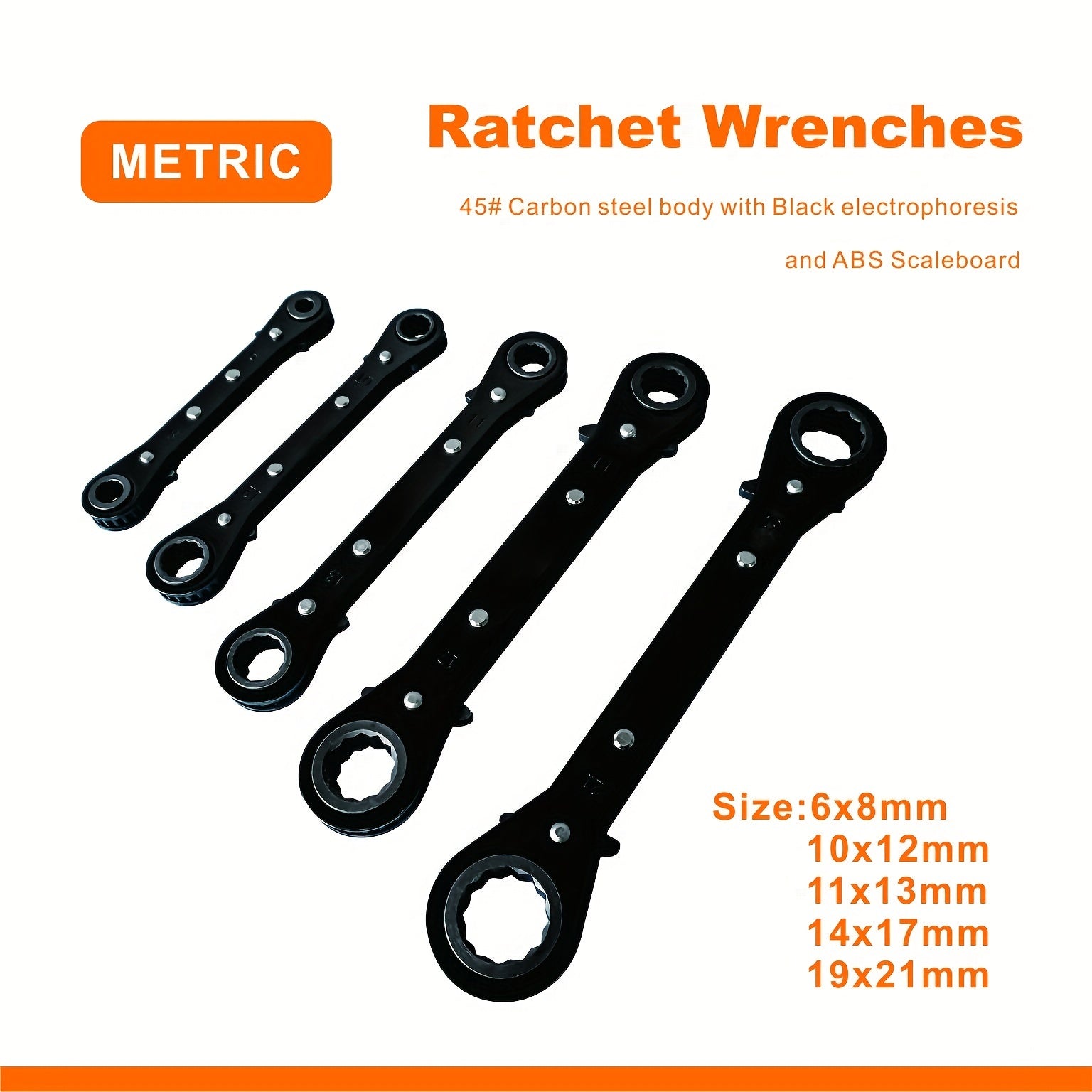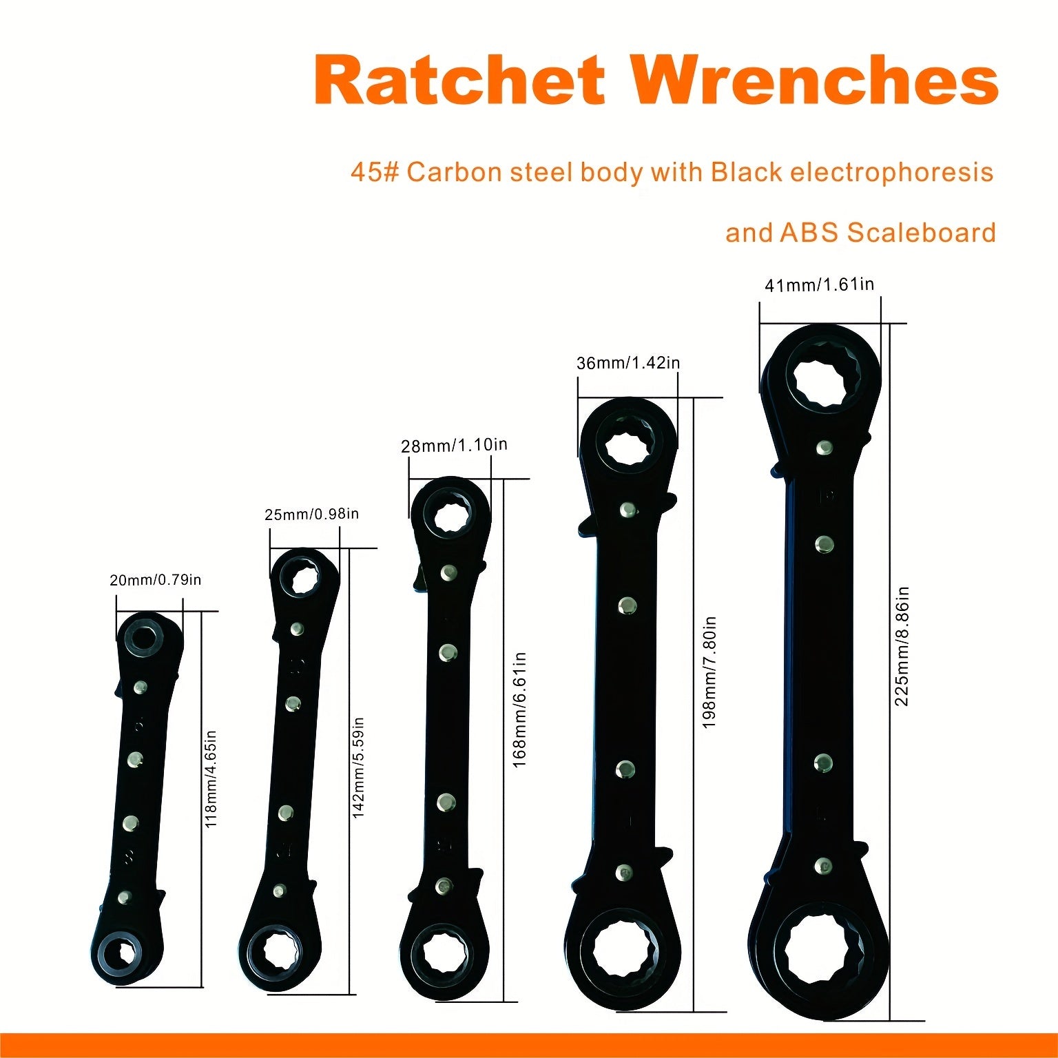 Juego de 5 llaves de carraca, herramientas manuales para reparación de autos, de doble extremo, duraderas