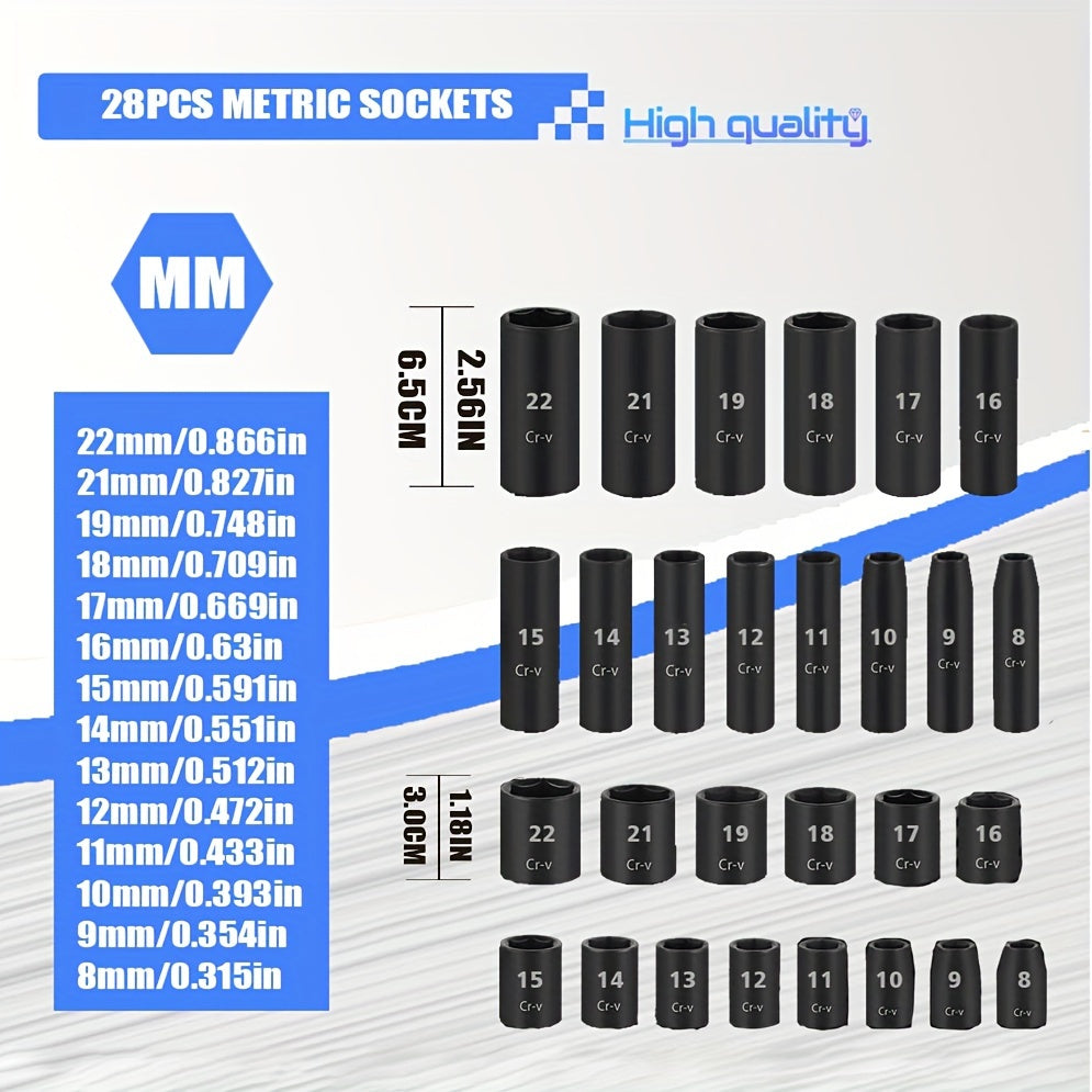 Juego de 50 piezas de barras de extensión de encendido SAE y métricas para trinquete y vasos de impacto