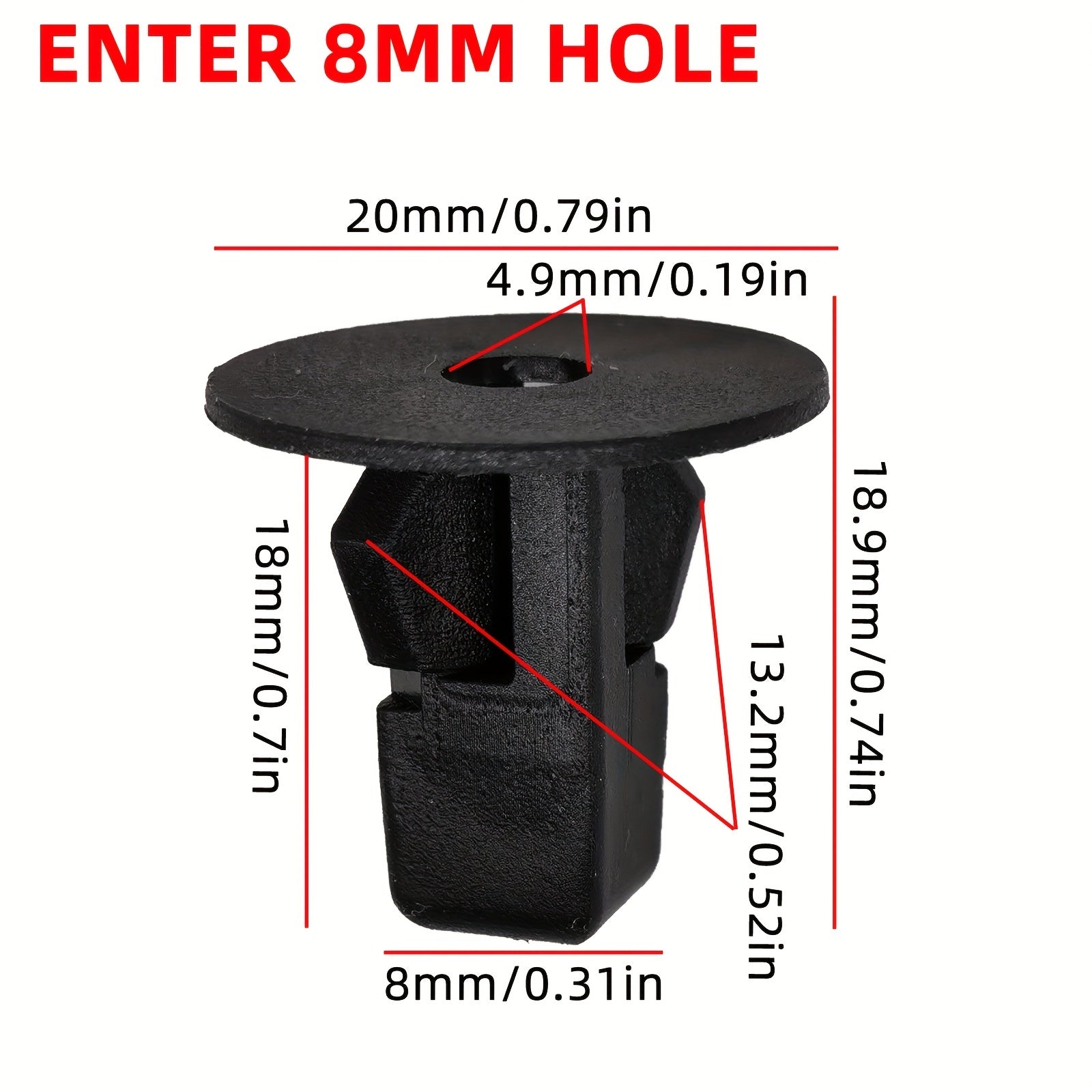 Kit de sujetadores con 50 piezas, remaches de goma para orificios de 8 mm en el revestimiento de parachoques en color negro para vehículos