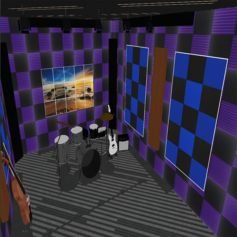 Paquete de 50 paneles de espuma acústica, cuñas insonorizantes, negro y púrpura, absorción de sonido en estudio