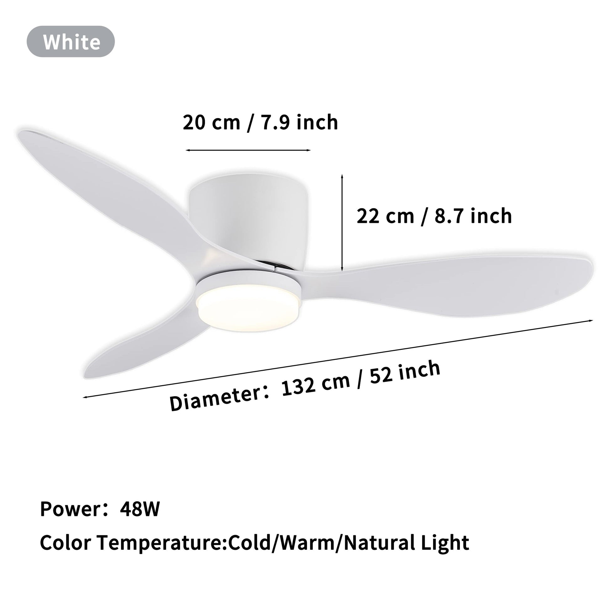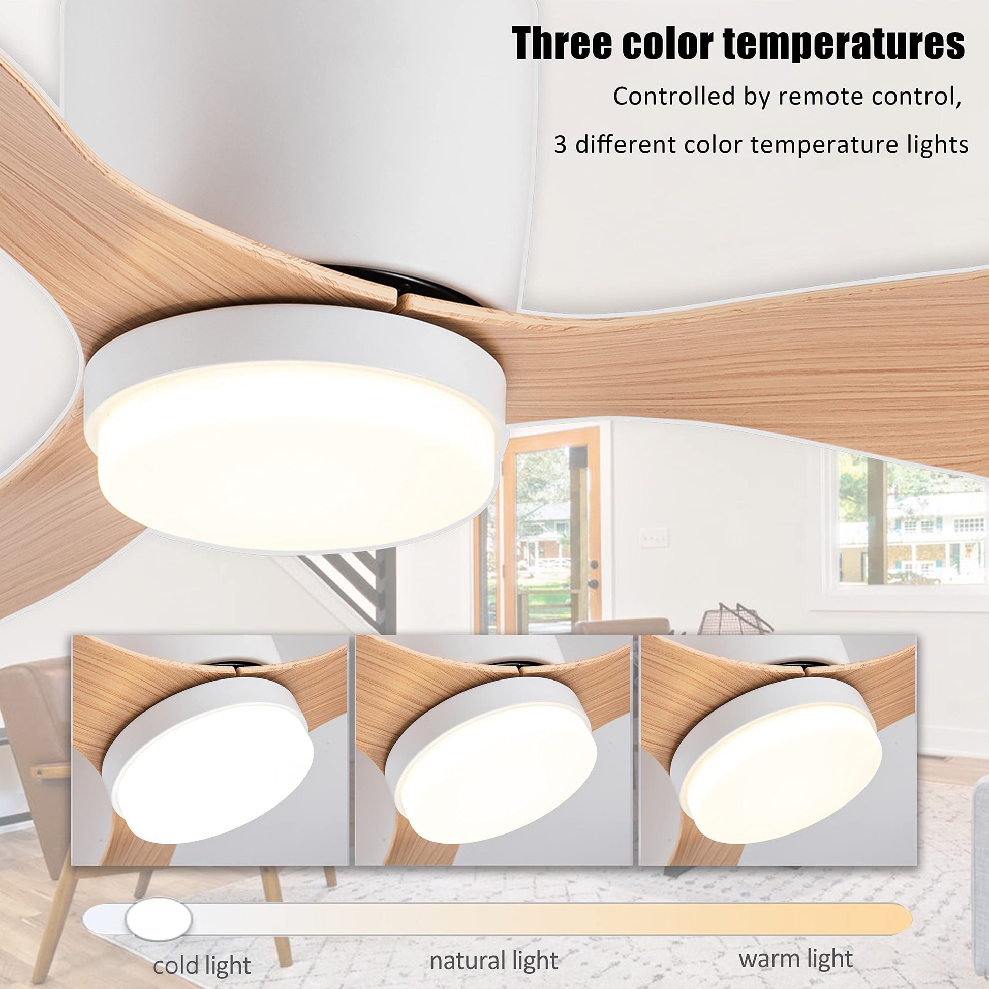 Ventilador de techo moderno de 52 pulgadas con luces LED, control remoto, temperatura de color ajustable, 6 velocidades para uso en interiores, sala de estar, dormitorio, comedor