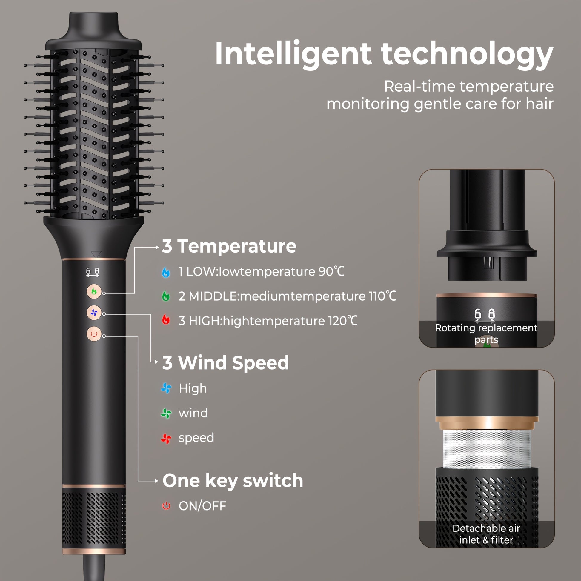 Cepillo de peinado 5 en 1 con plancha de aire iónico, rizador de pelo, cepillo de aire caliente 110000 RPM