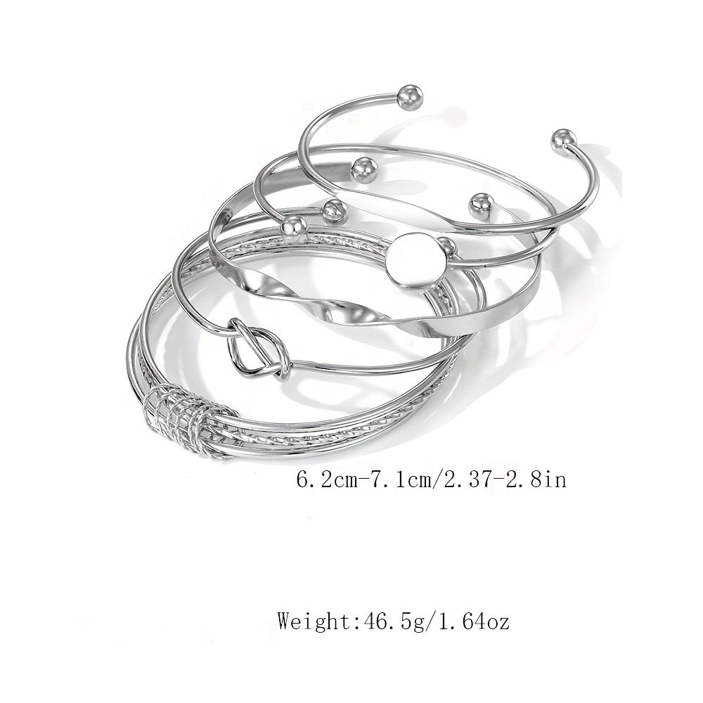 Set de 5 pulseras vintage abiertas para mujer, metálico dorado, con espiral geométrica y nudos