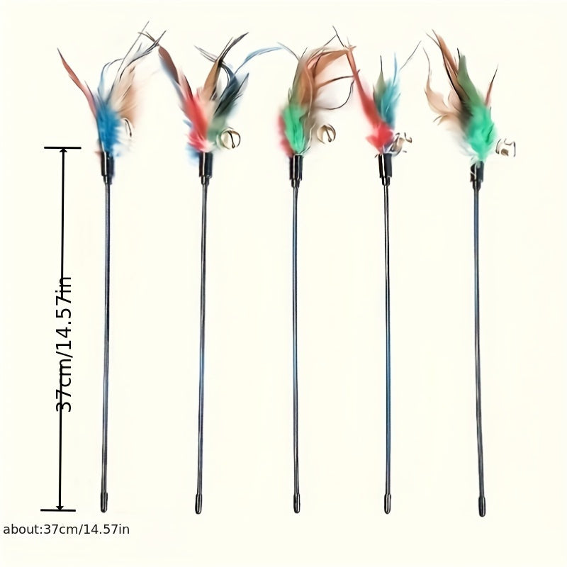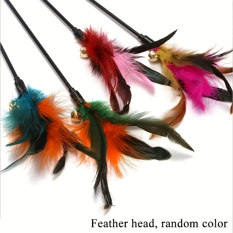 Juguete para gatos 6 campanas pluma mango de plástico teaser resistente a mordiscos para gatos