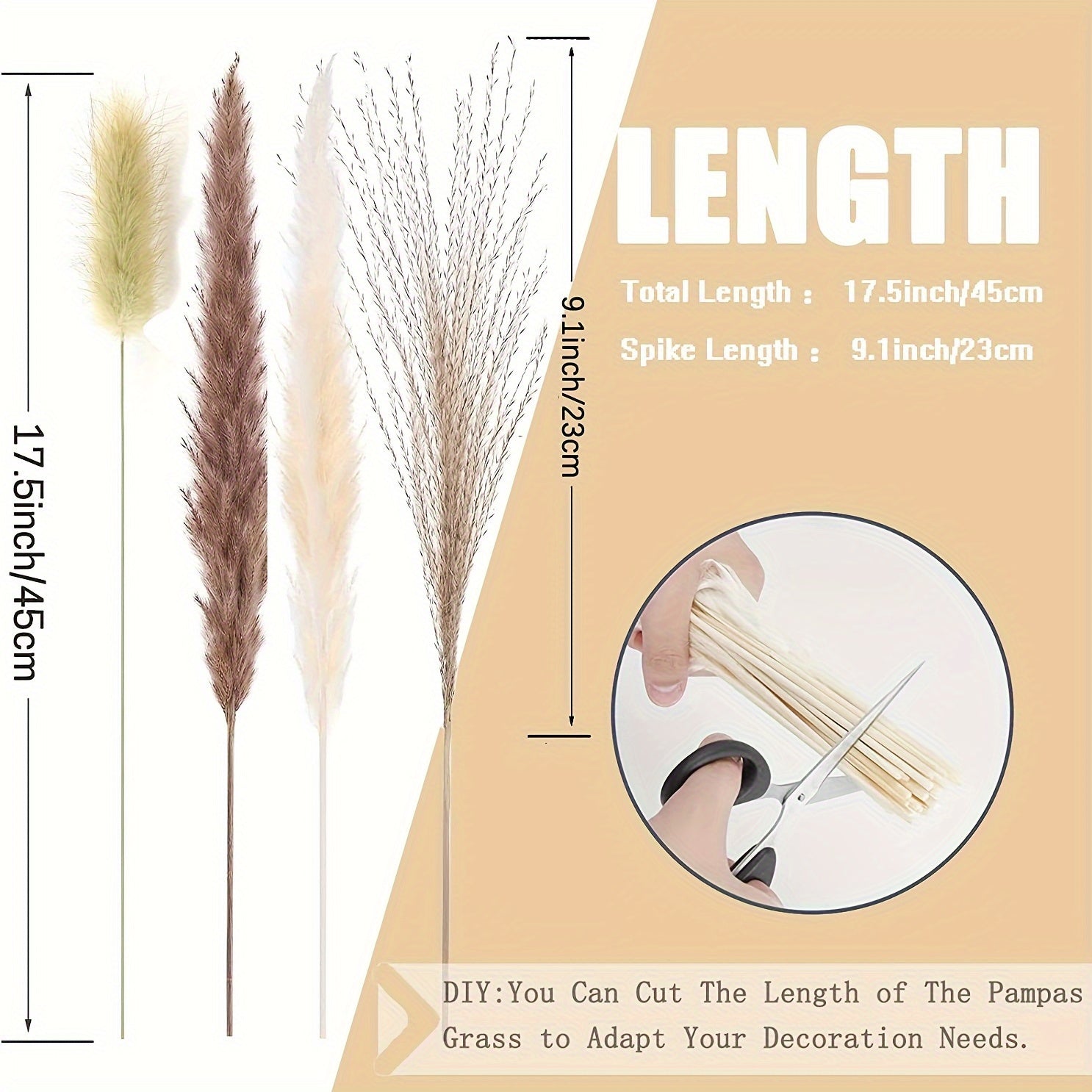 62 piezas de flores artificiales de pampas, colas de conejo, ramo de caña para decoración del hogar