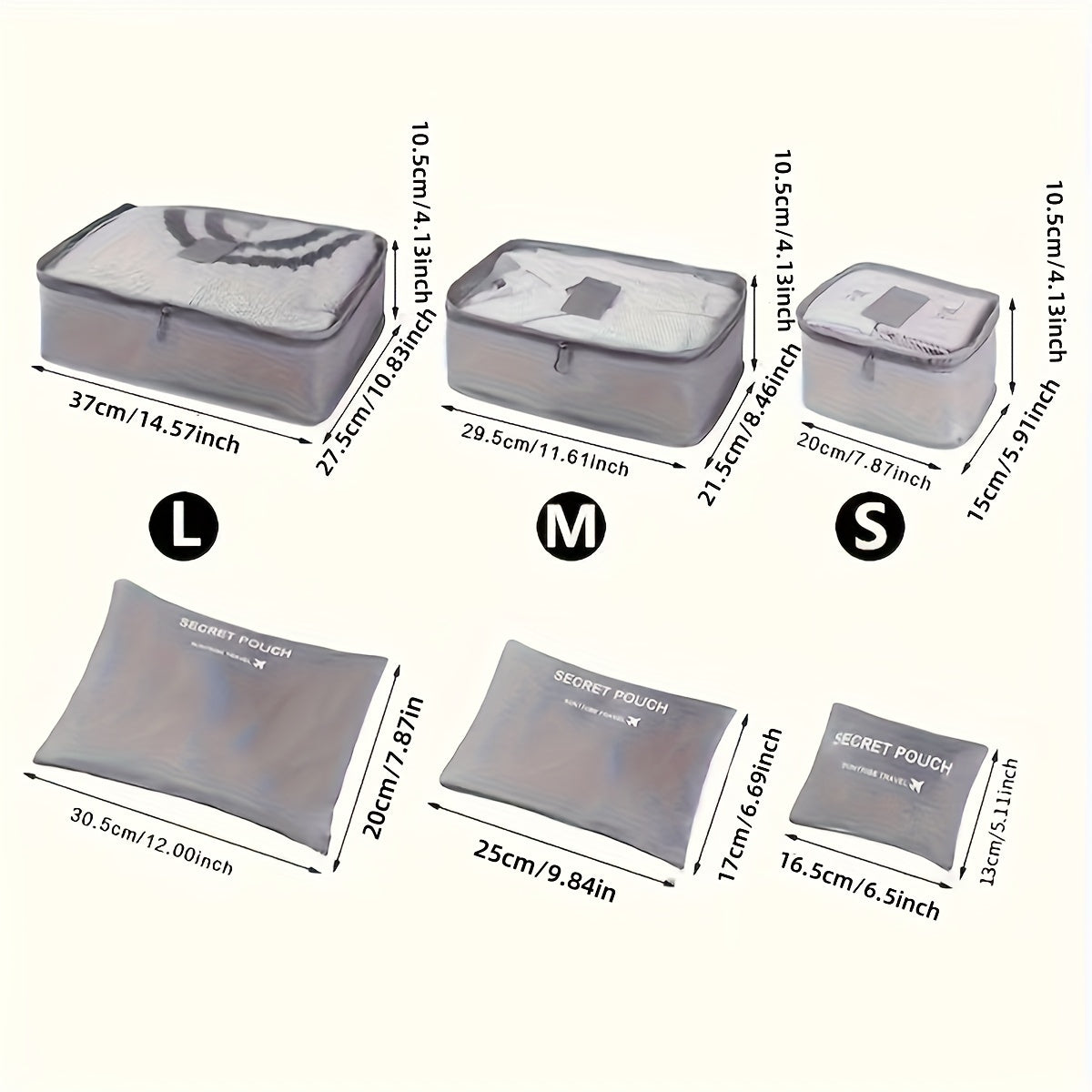 6pcs bolsas de almacenamiento para equipaje de viaje, ligeras, a prueba de polvo, organizadores de maquillaje