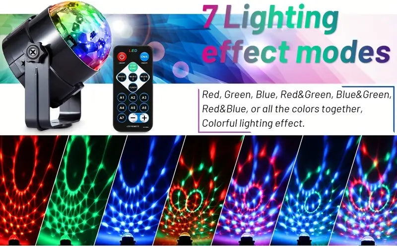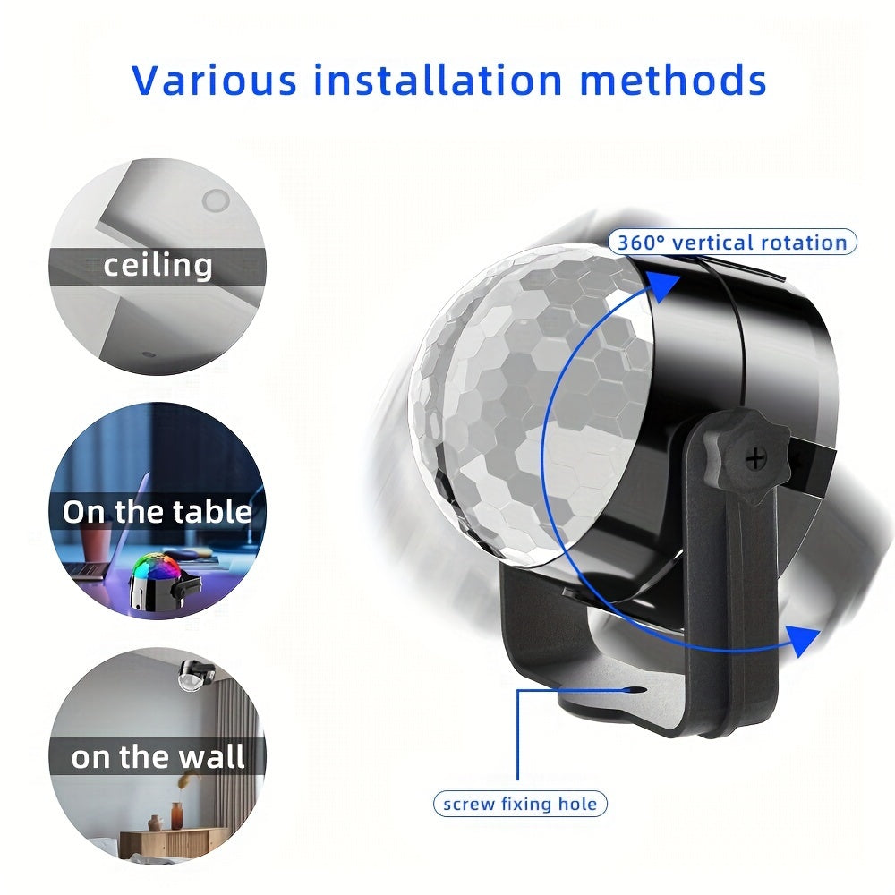 Luz de bola de discoteca LED de 7 colores, alimentada por USB, material ABS negro para fiestas y eventos