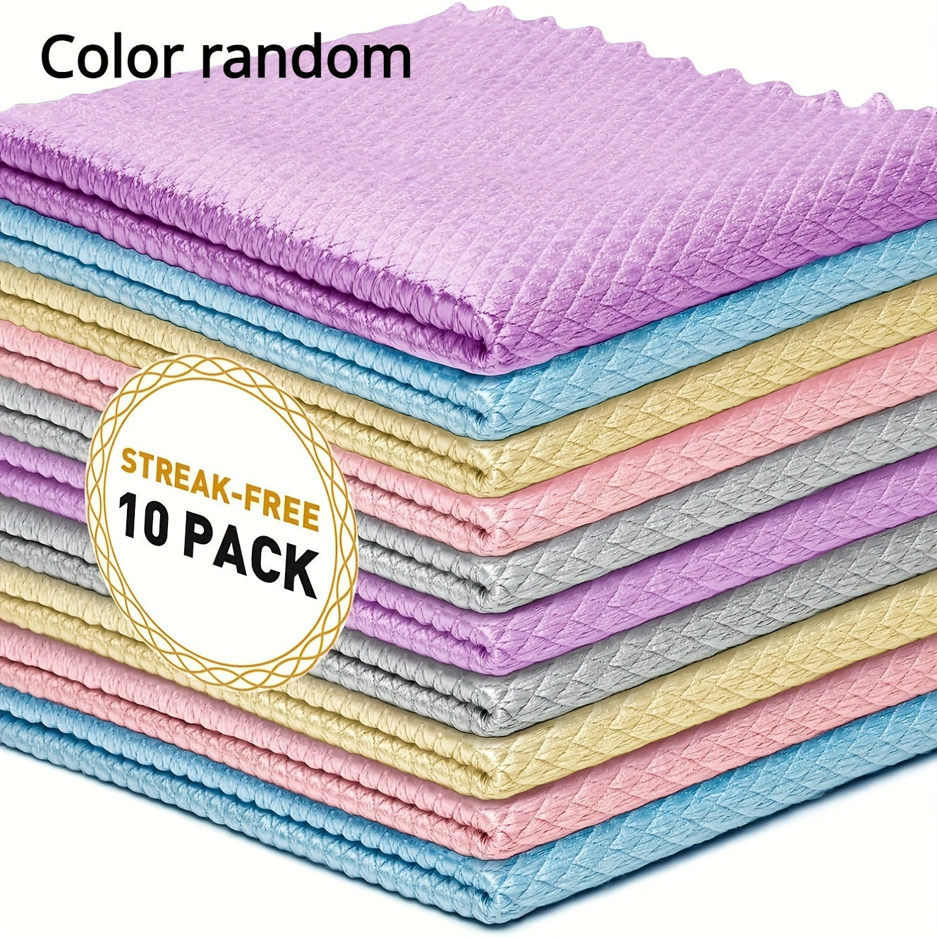 Paquete de 10 paños duraderos con patrón de escamas de pescado, tejidos en poliéster, toallas de limpieza multiusos