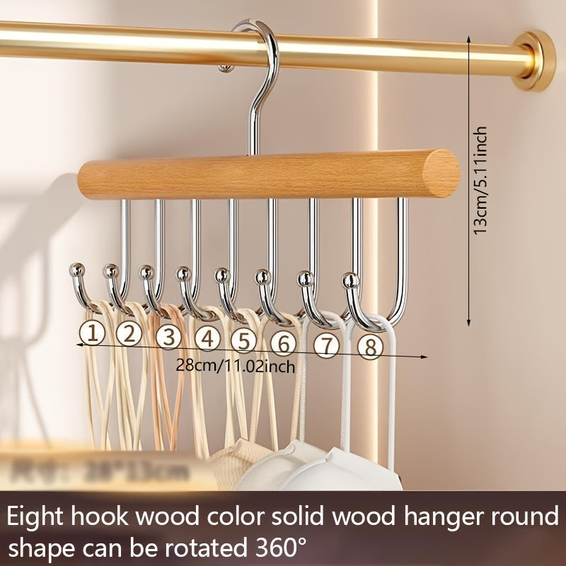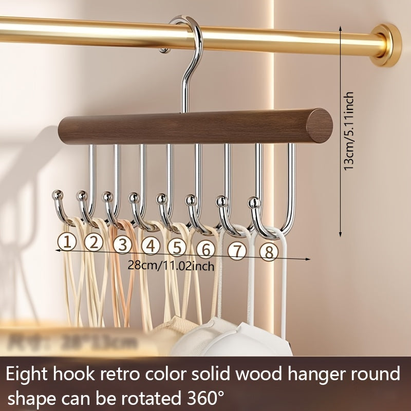 Perchero de madera con 8 ganchos, organizador de armario giratorio y ahorrador de espacio