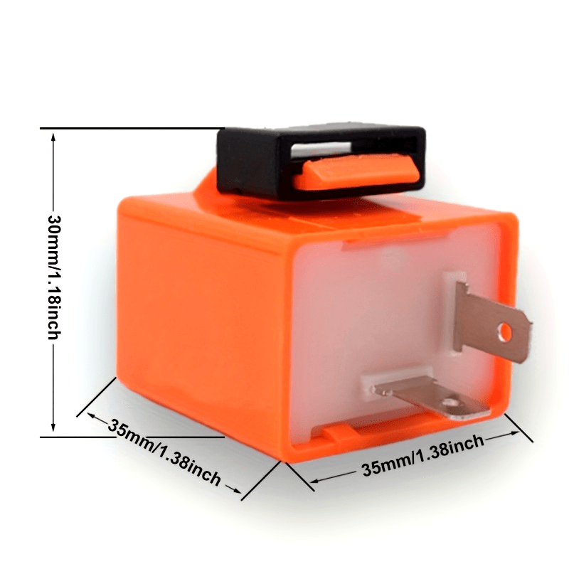 Relé de motocicleta LED ajustable de 2 pines, duradero, con terminales de ABS naranja y negro