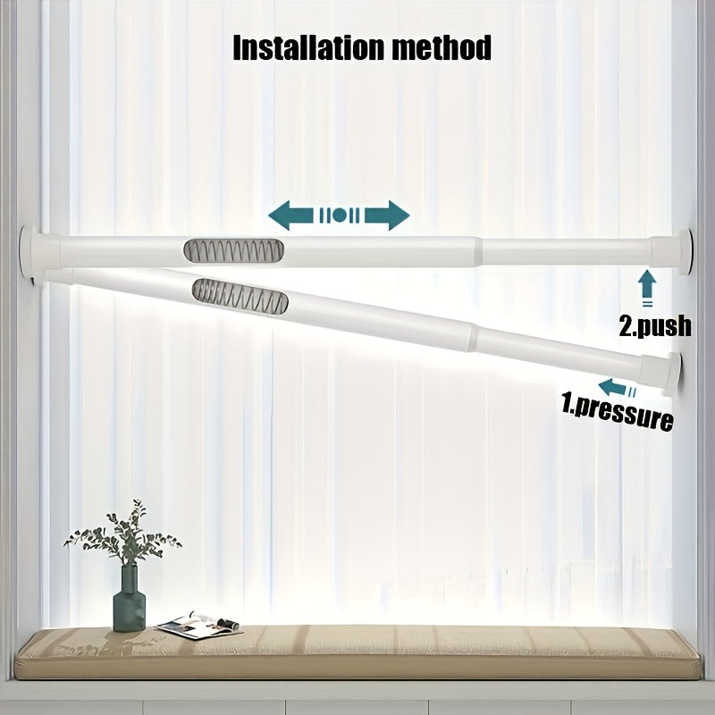 Barra de cortina telescópica de metal ajustable con tensión de resorte, diseño sin taladro para ducha y ventana