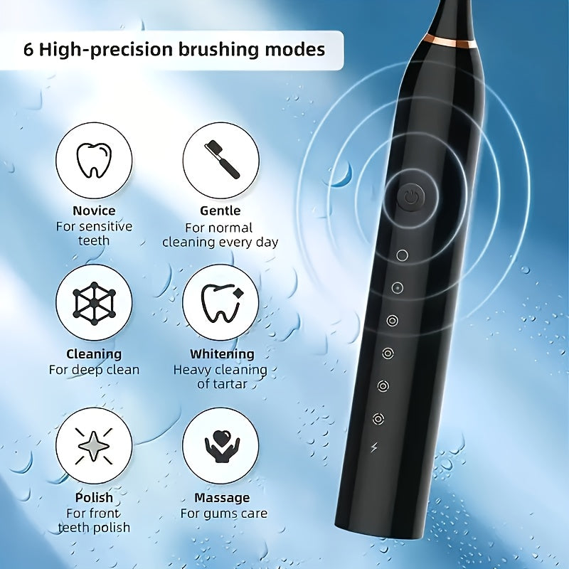 Pack de 8 cepillos de dientes eléctricos Sonic para adultos con 6 modos, cabezales de repuesto