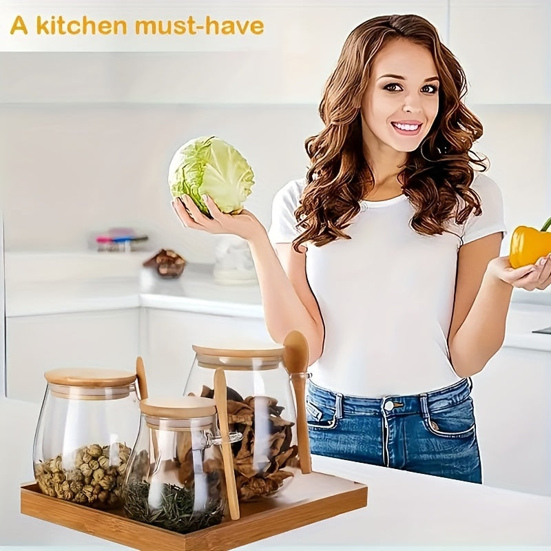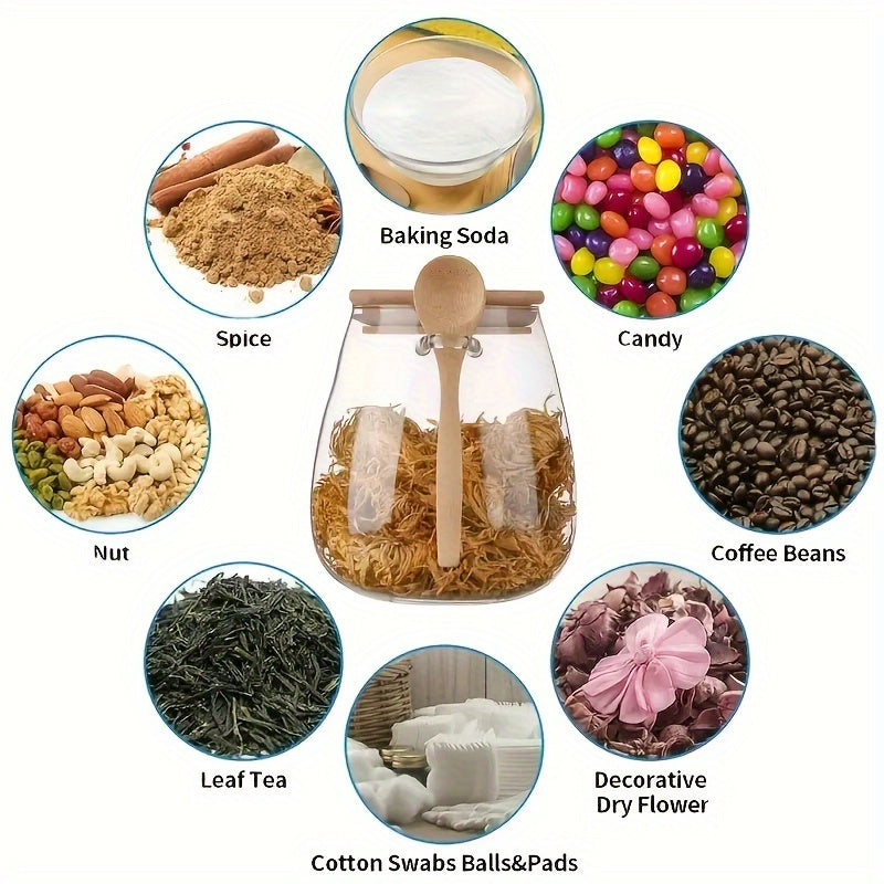 Tarro de almacenamiento de vidrio con cuchara para café, azúcar, té, sal, especias, organizador de cocina