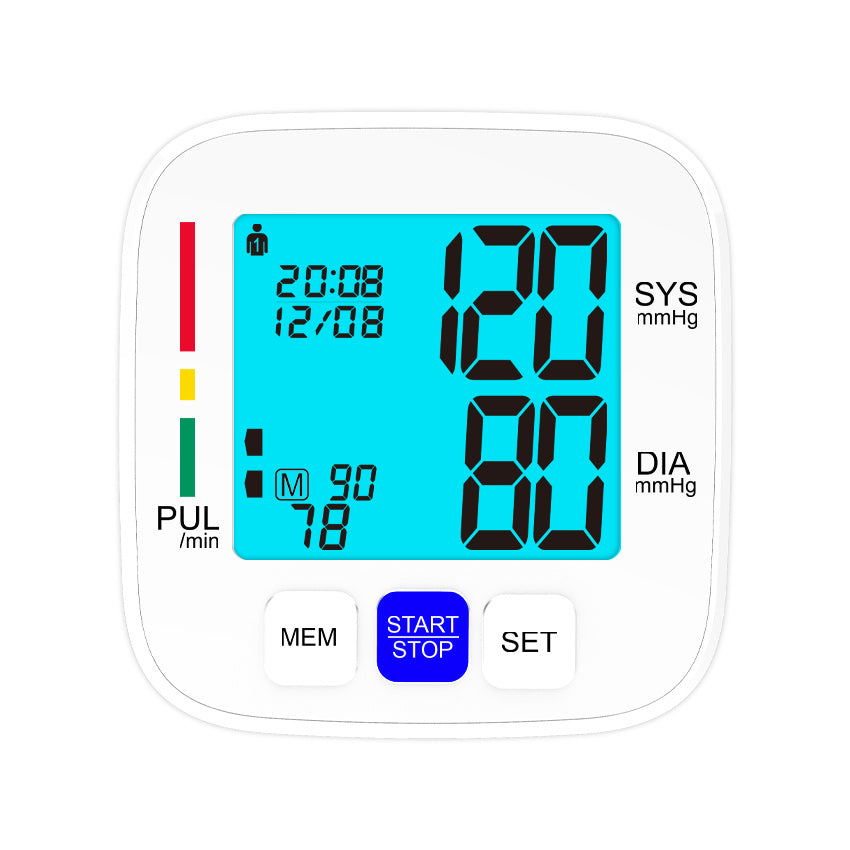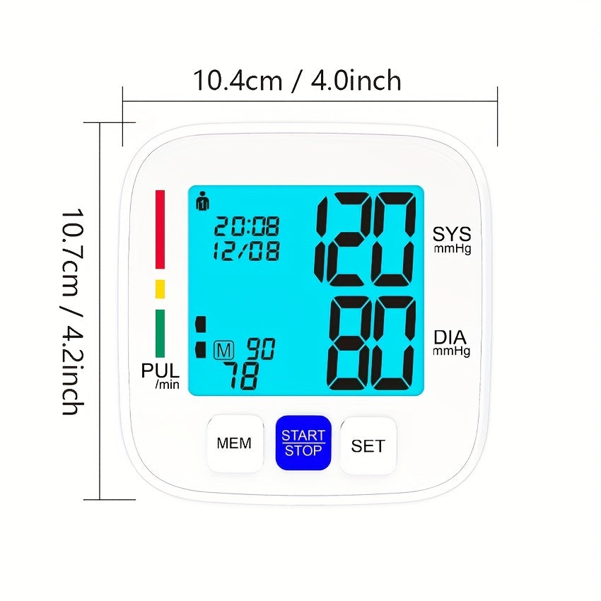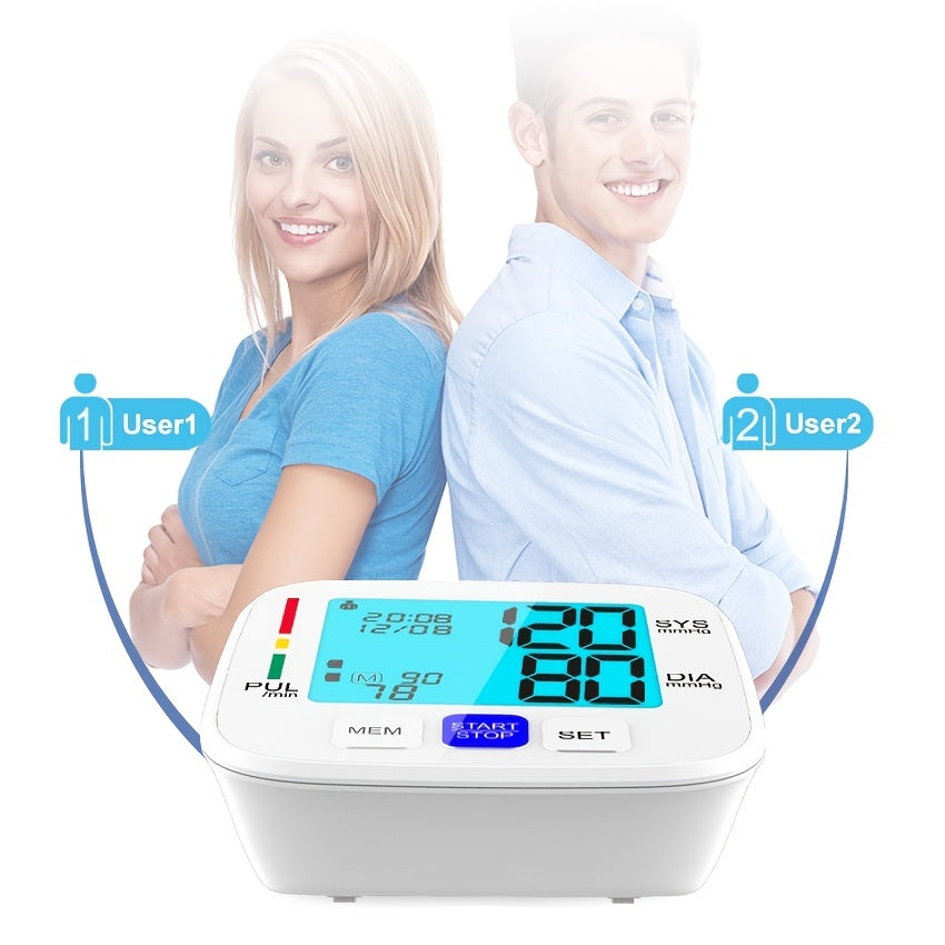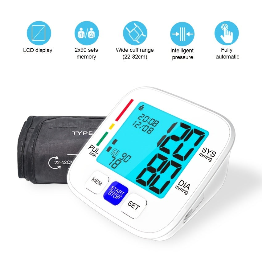 Monitor de presión arterial de brazo superior con pantalla grande, manguito ajustable, 180 memorias