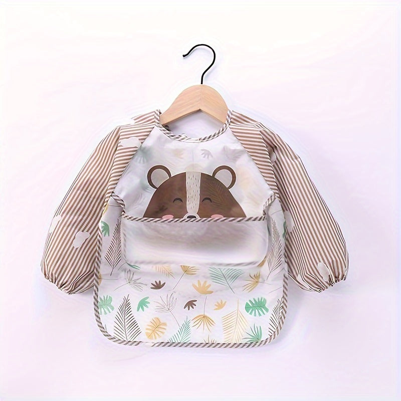 Babero impermeable para niños con bolsillos, diseño de dibujos animados, material suave, delantal de manga larga
