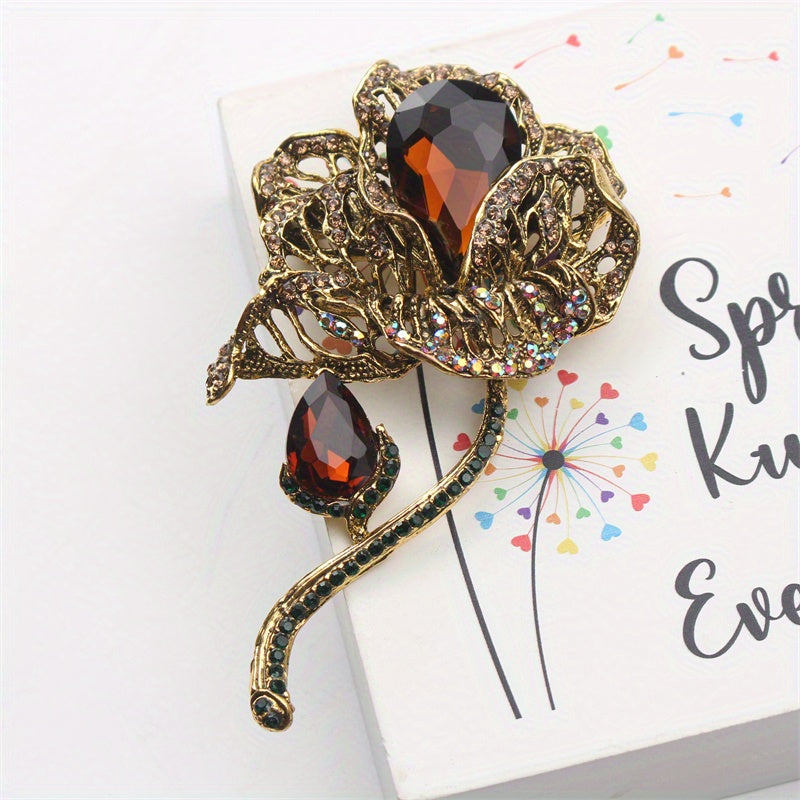 Broche antiguo de mujer con loto y grandes rhinestones de flor retro
