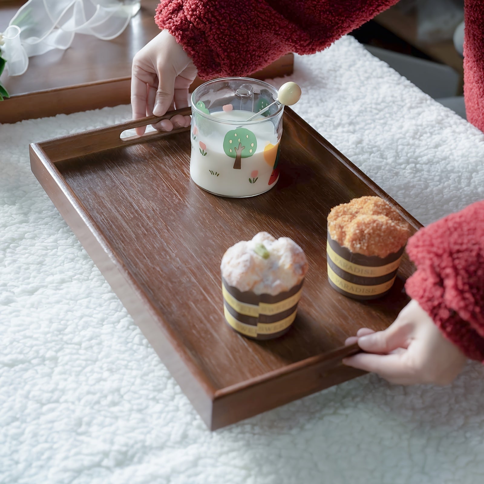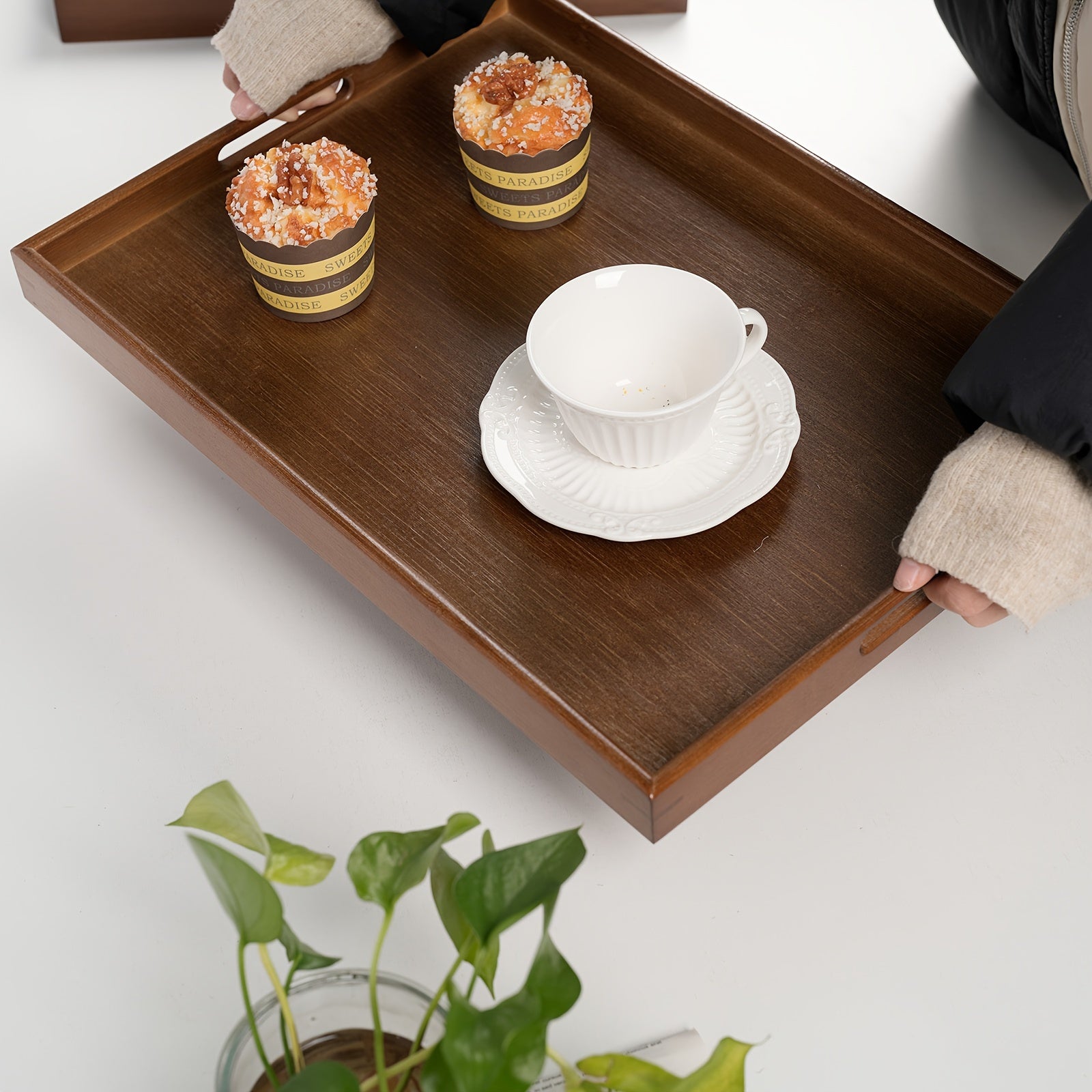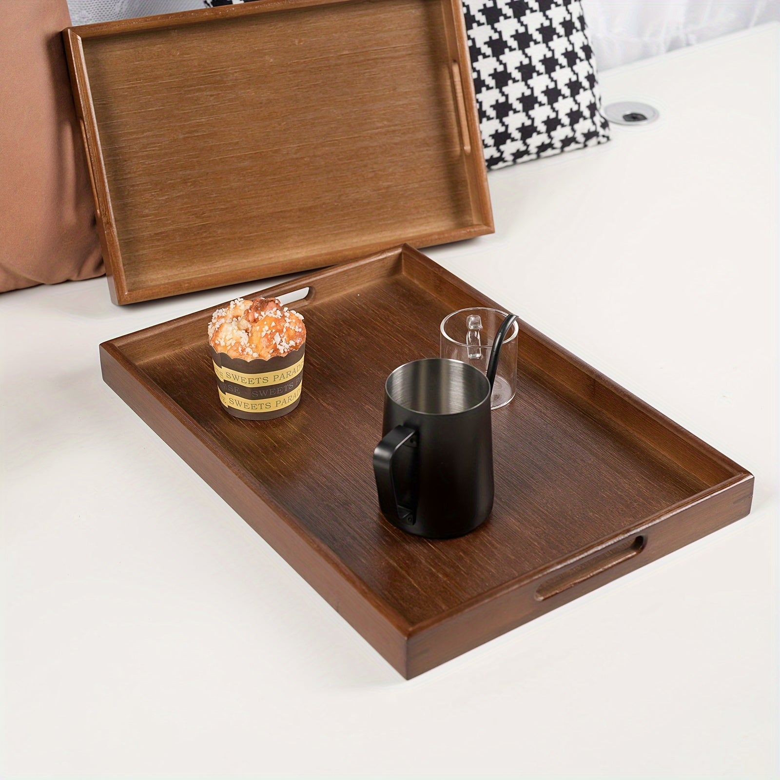 Bandeja de servicio de bambú con asas para organización y decoración del hogar