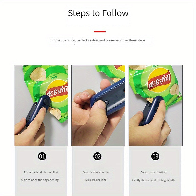 Sellador de alimentos portátil a batería, recargable por USB, plástico, para sellar al vacío snacks y conservar alimentos