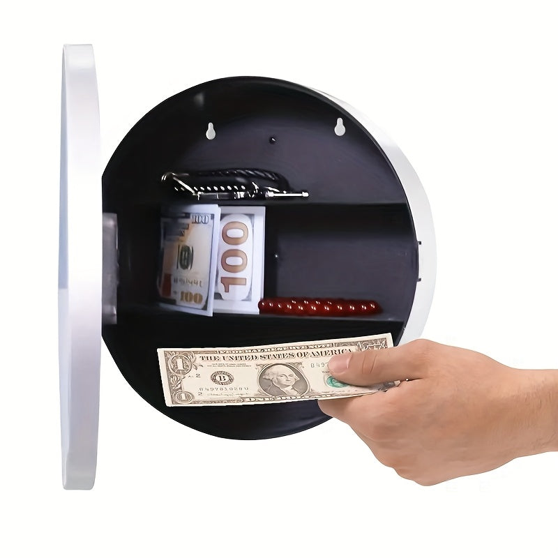 Reloj de pared con compartimento de seguridad oculto, marco de metal, esfera blanca