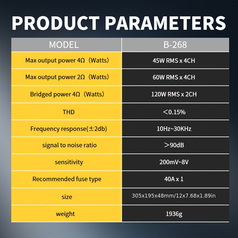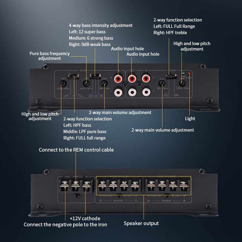 Amplificador de coche de 4 canales 7800W potencia máxima estéreo negro disipador de calor con ventilador sin batería necesaria