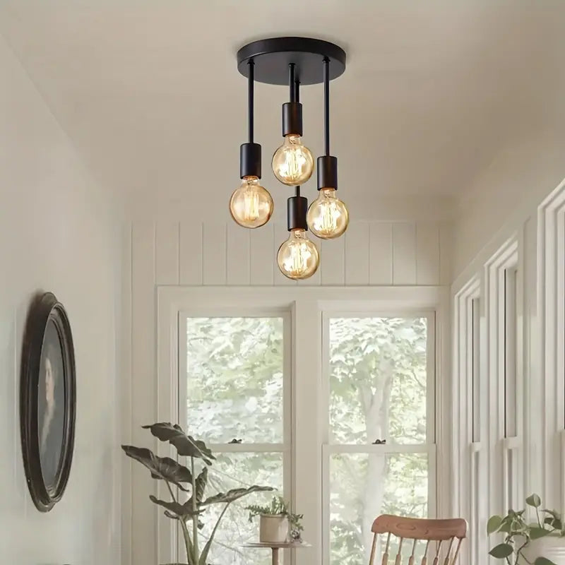 Lámpara de techo moderna negra con satélite y colgante con 4 portabombillas E27 para dormitorio, cocina, sala de estar