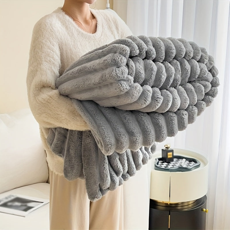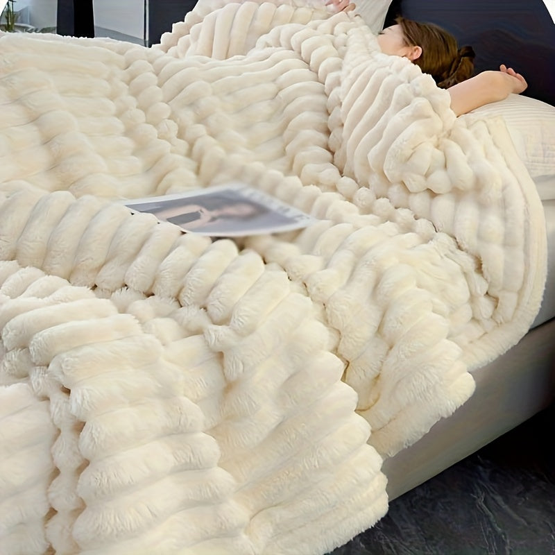 Chal de imitación de piel de conejo blanco suave y cálido para todas las estaciones