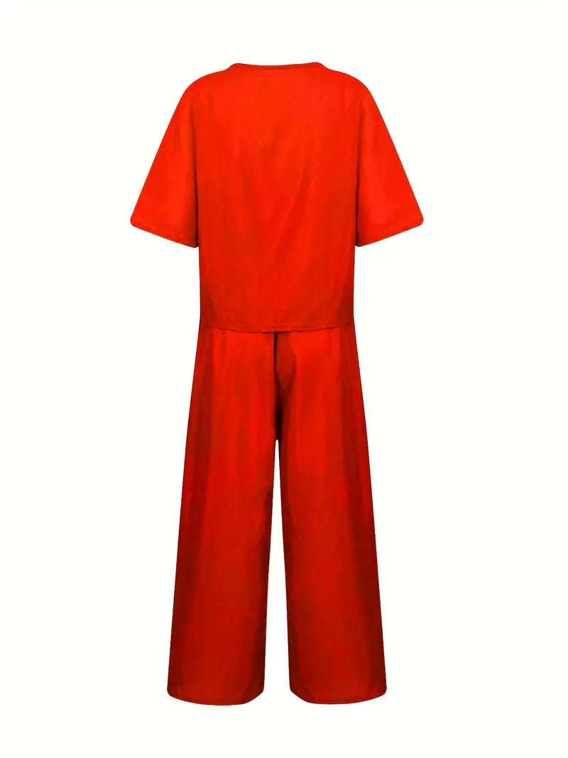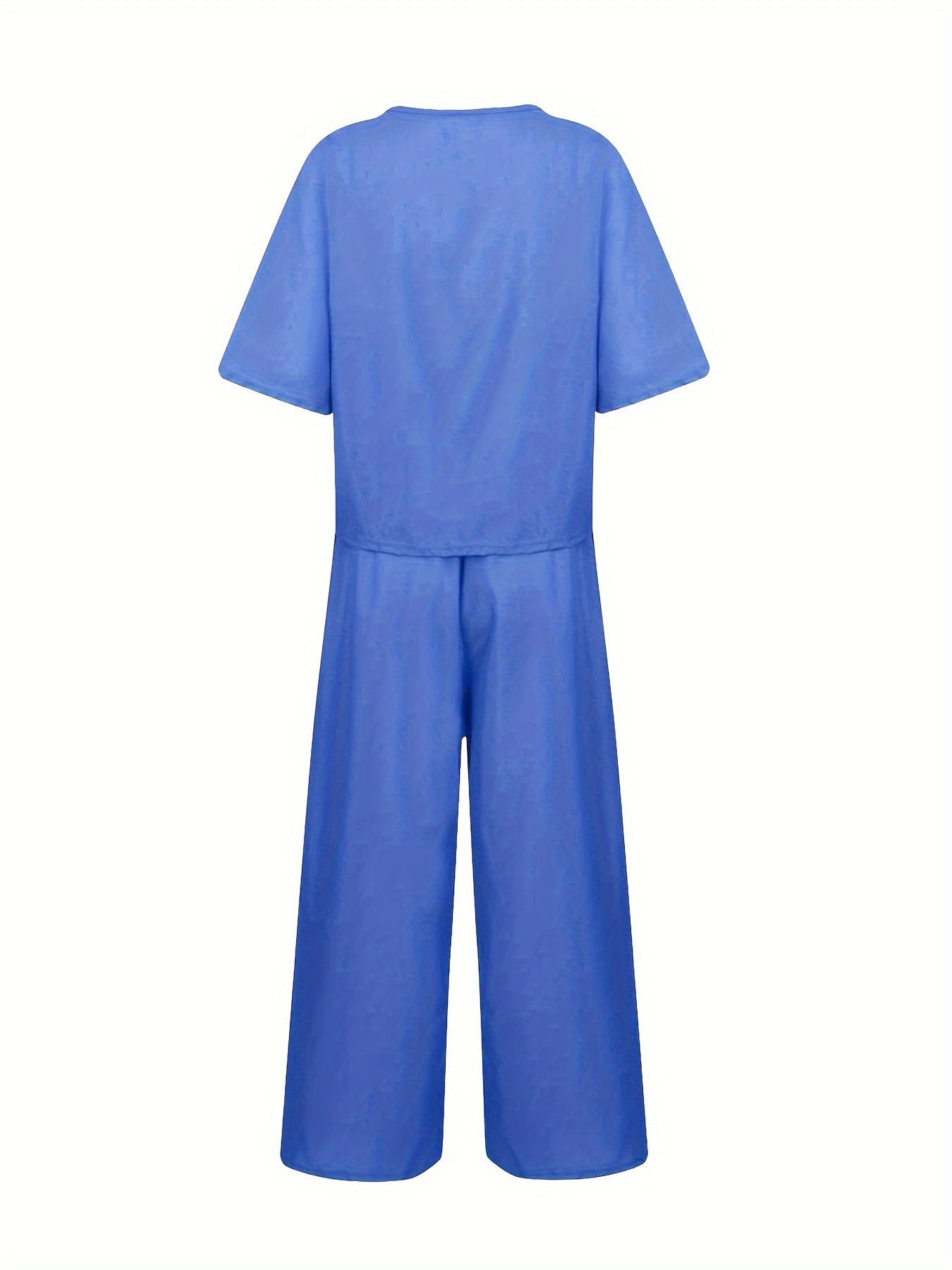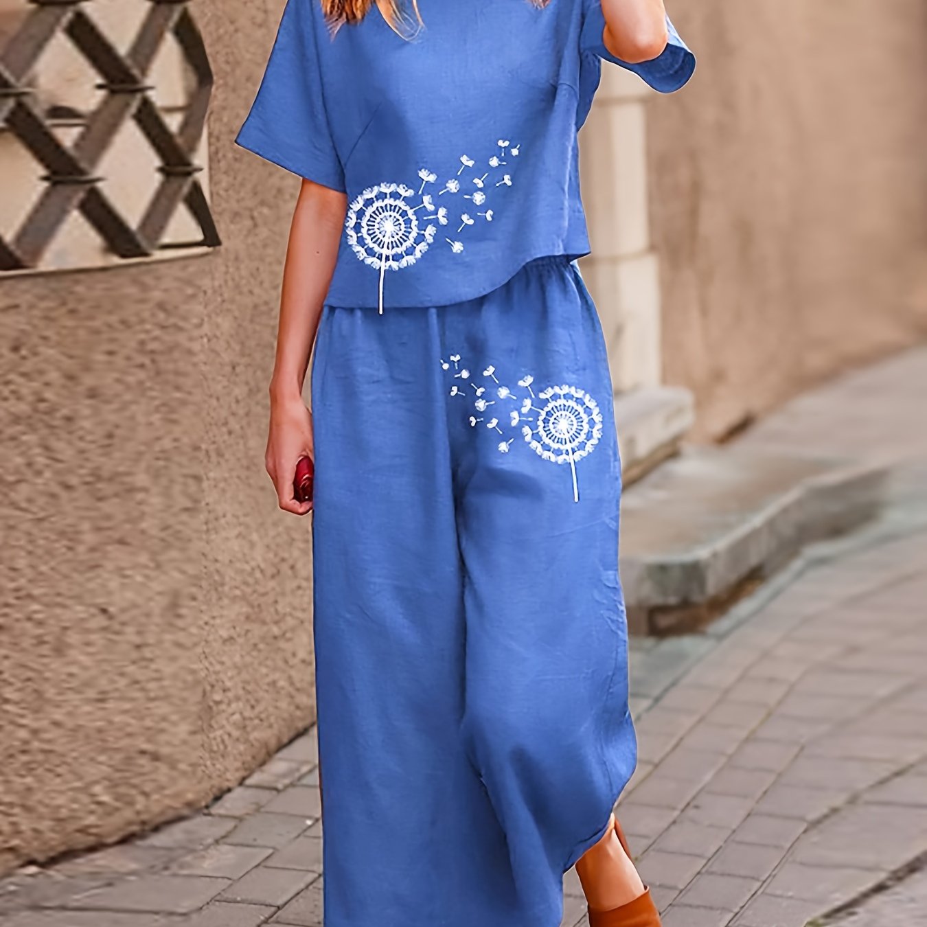 Conjunto de pijama boho con estampado de diente de león para mujer, con top de manga corta y pantalones cortos de pierna ancha y largo cropped