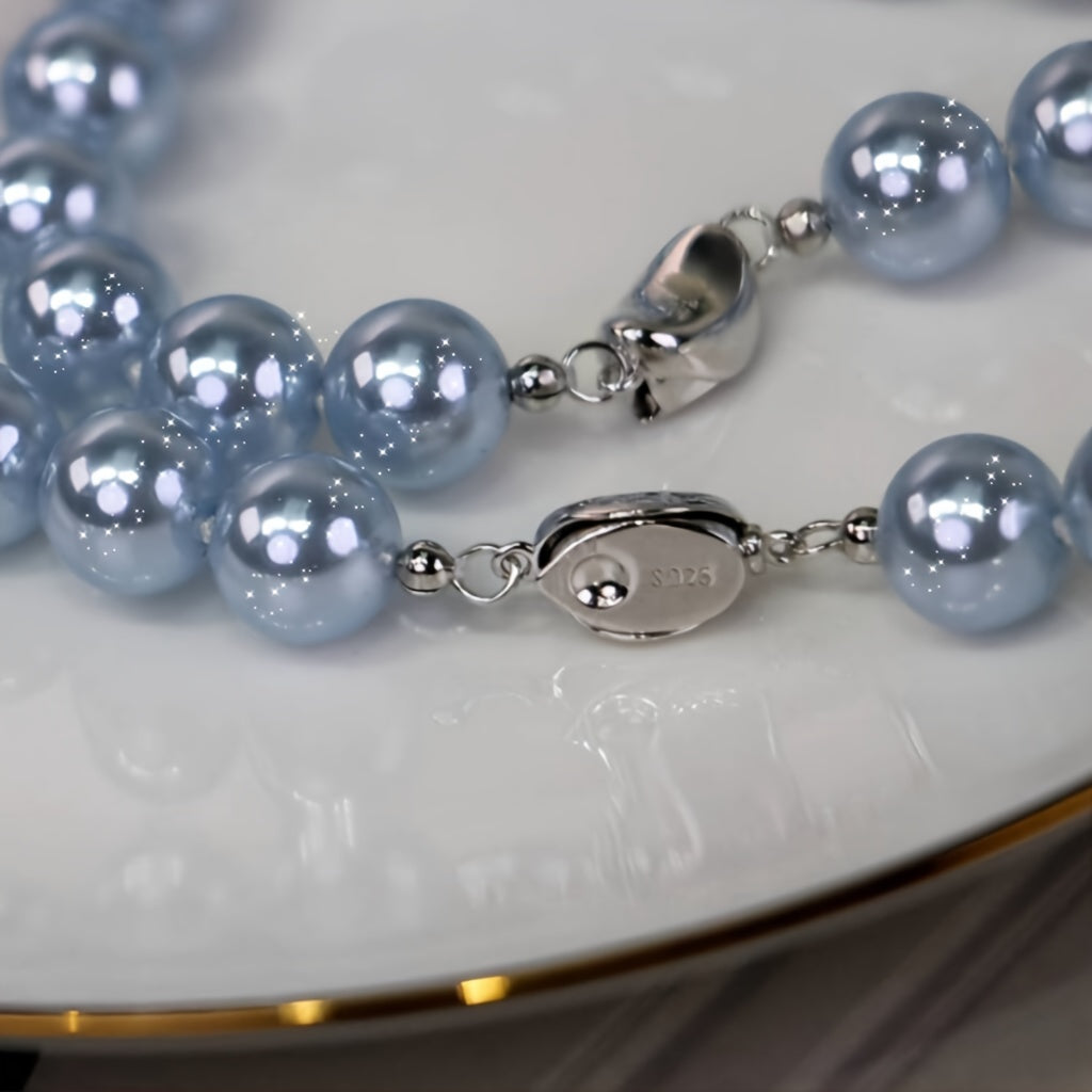 Collar de perlas Shell Blue para mujer, bohemio, elegante, para uso diario, caja de regalo