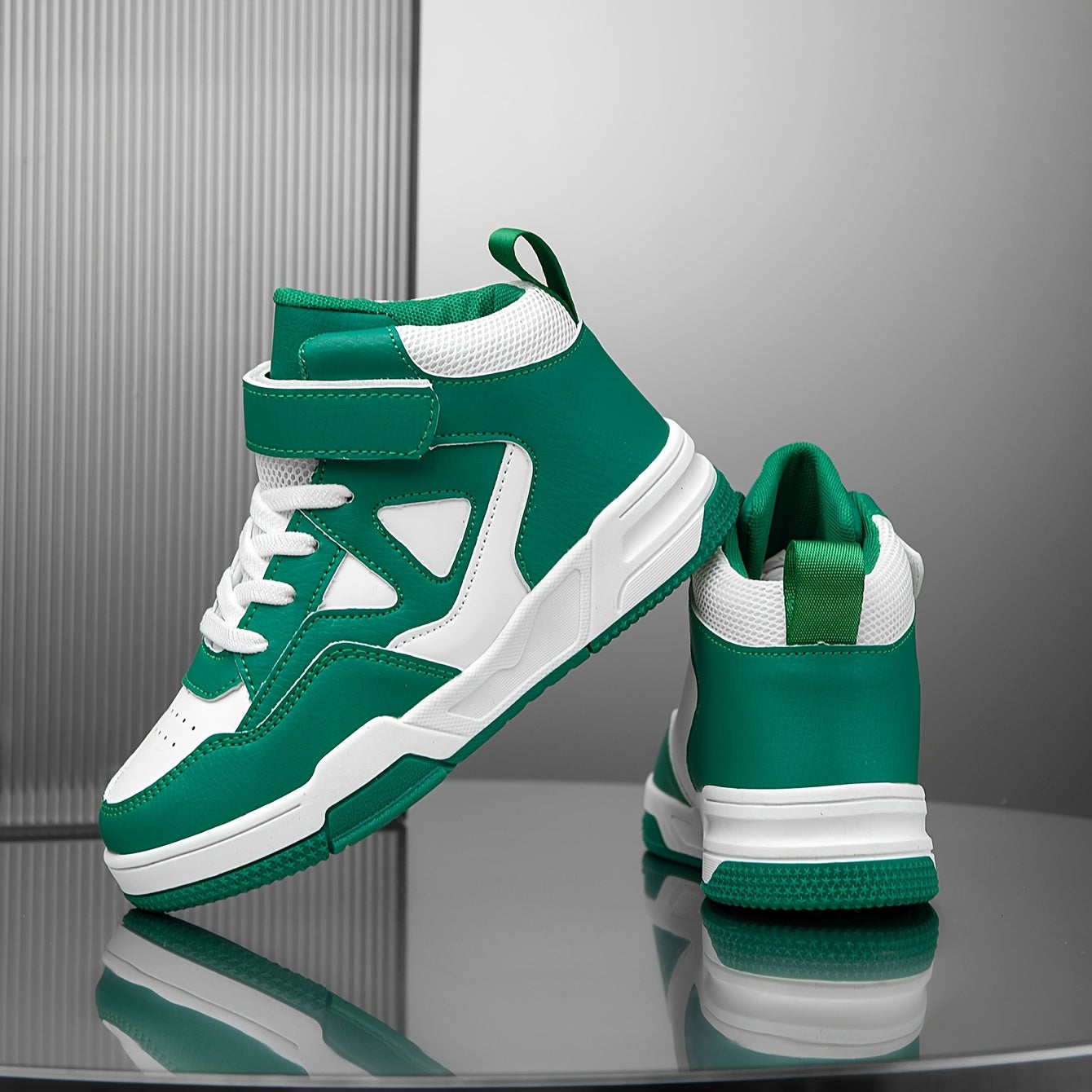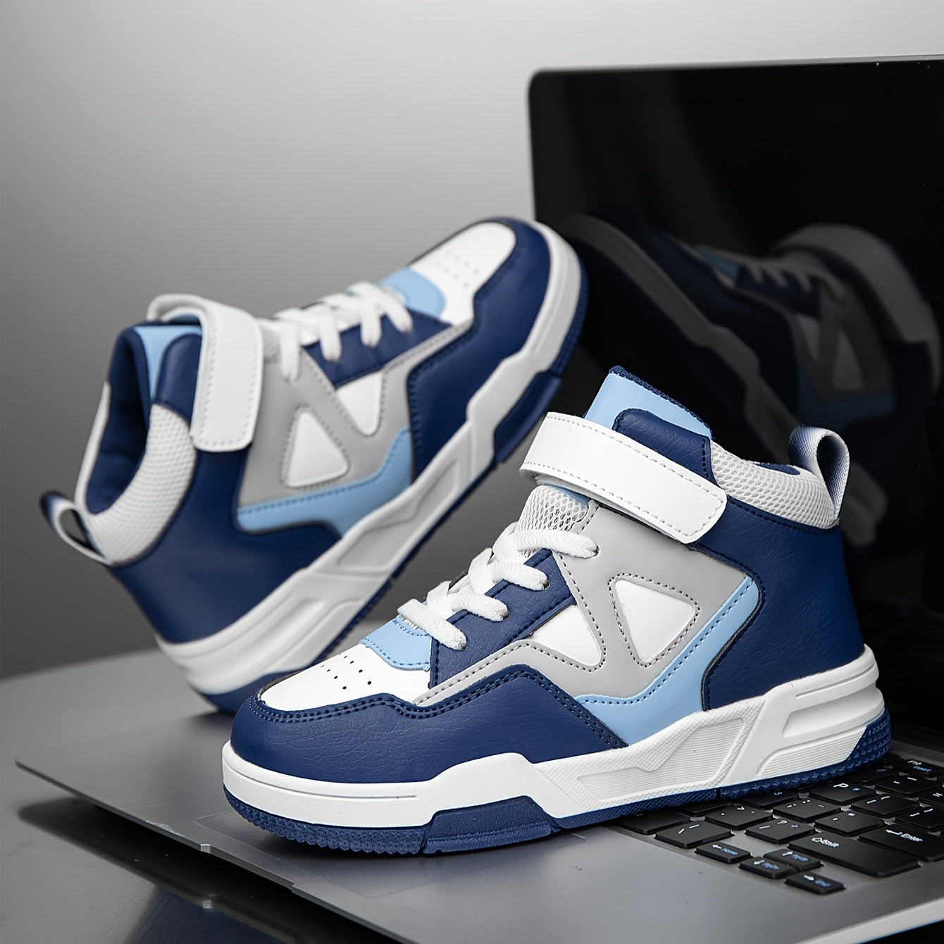 Zapatillas altas para niños con bloques de colores geométricos, cierre de velcro y parte superior de PU duradera