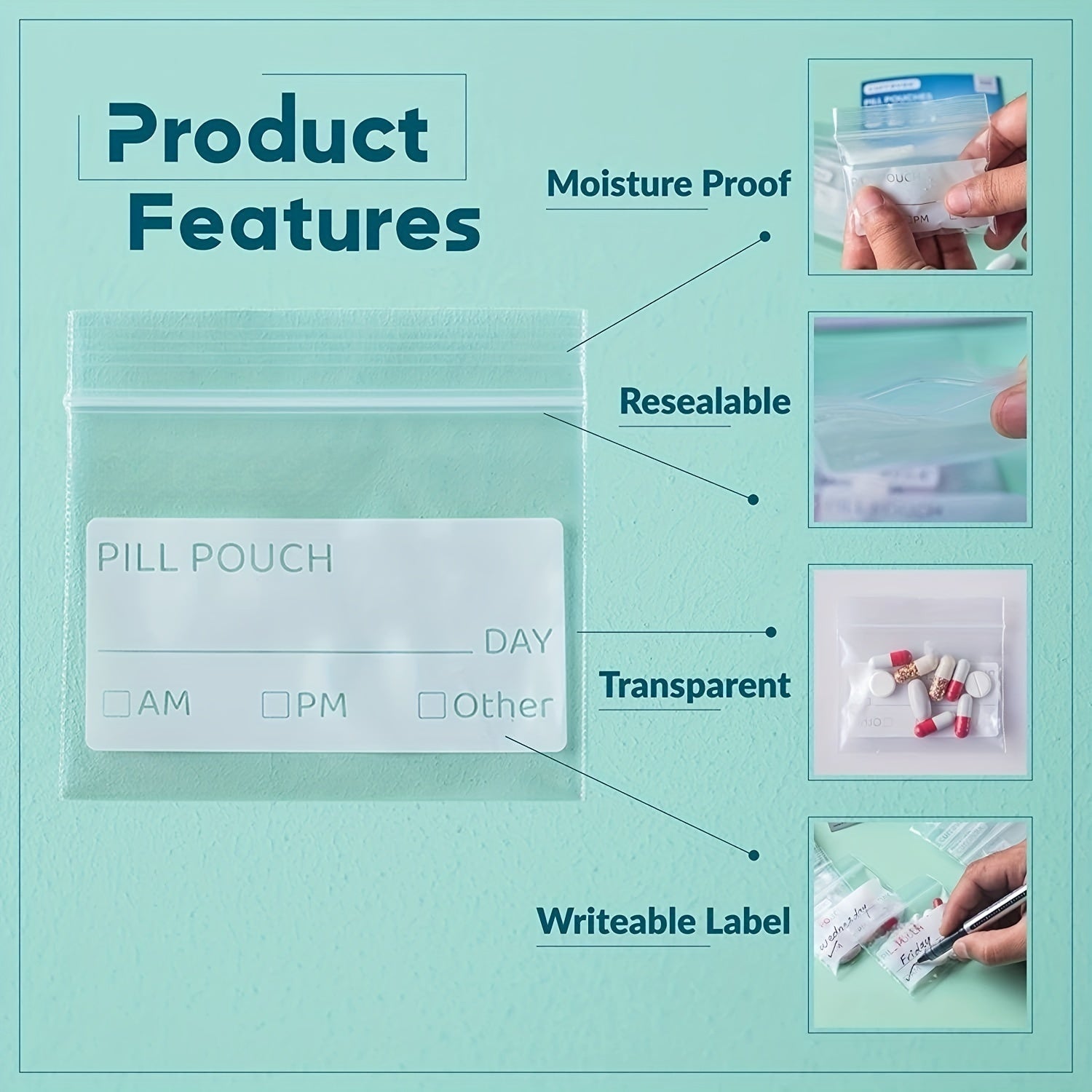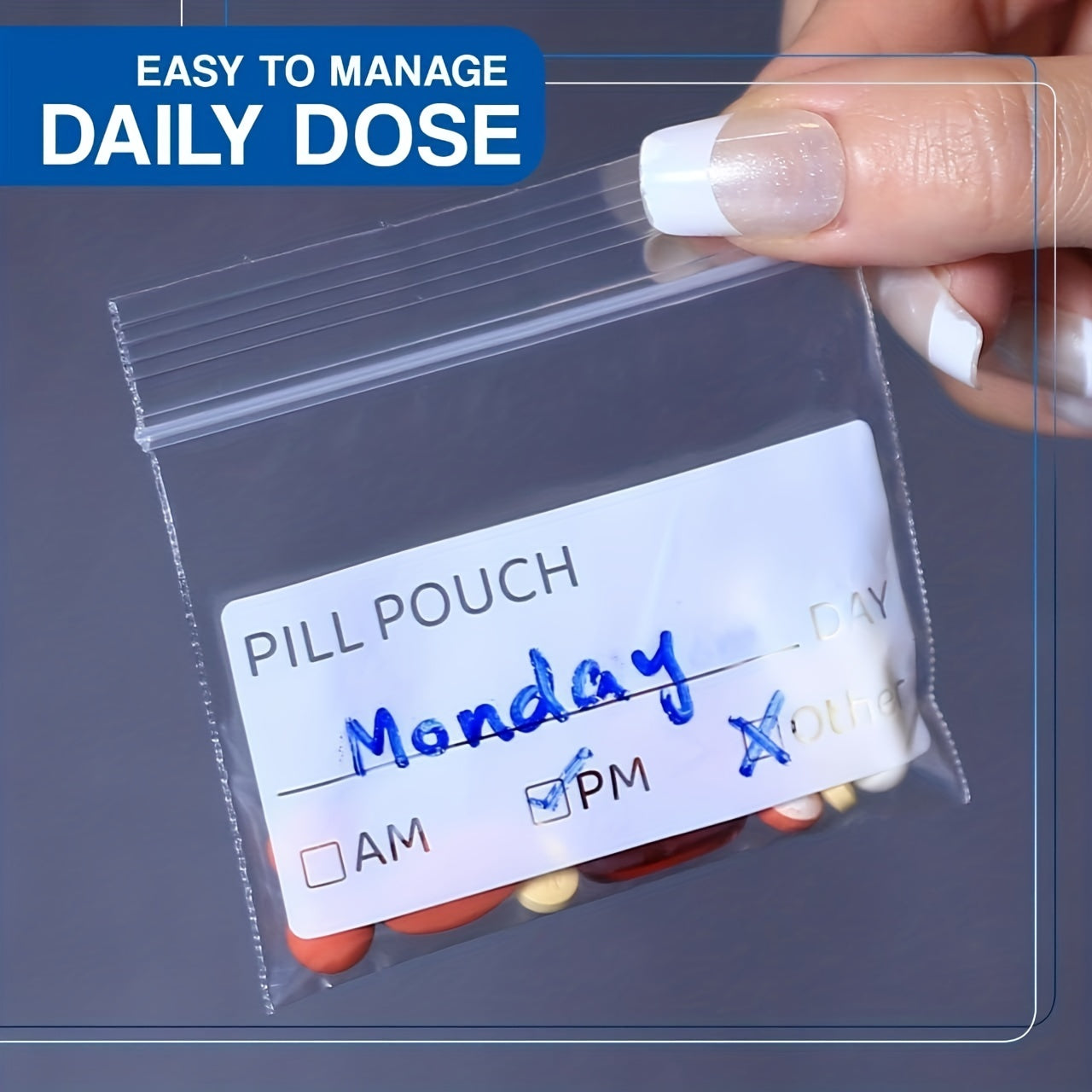 Bolsas organizadoras de pastillas sin BPA, tamaño de viaje, con cierre zip transparente, etiquetas para escribir, 120-500 piezas
