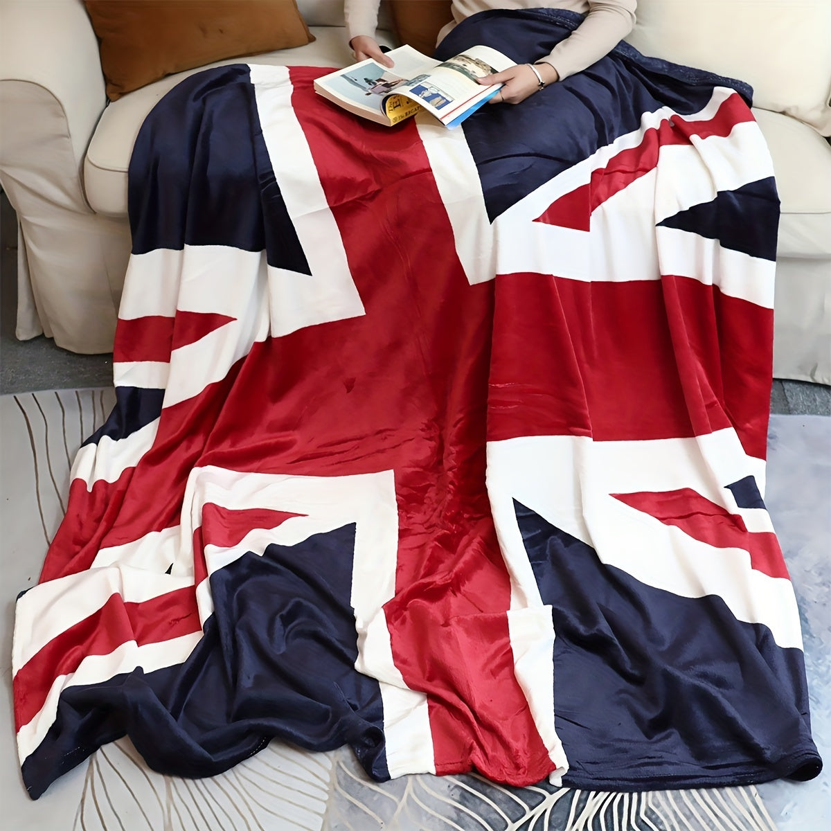 Manta de franela con estampado de bandera británica, tamaño twin, suave para cama, sofá o silla, regalo de invierno y vacaciones