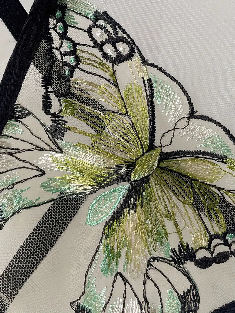 Tanga de malla para mujer con cinturilla de purpurina y estampado de mariposa, lencería semi-transparente